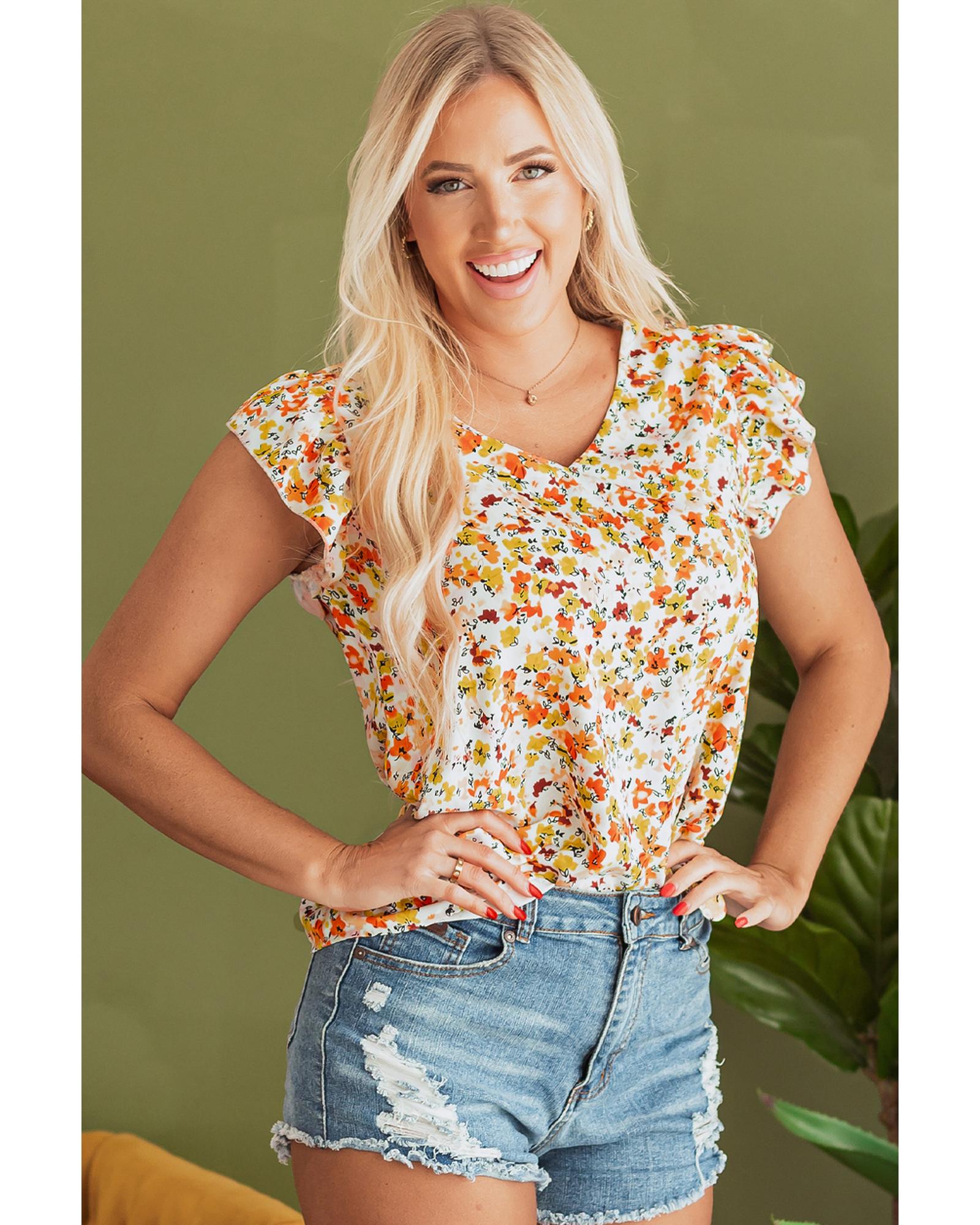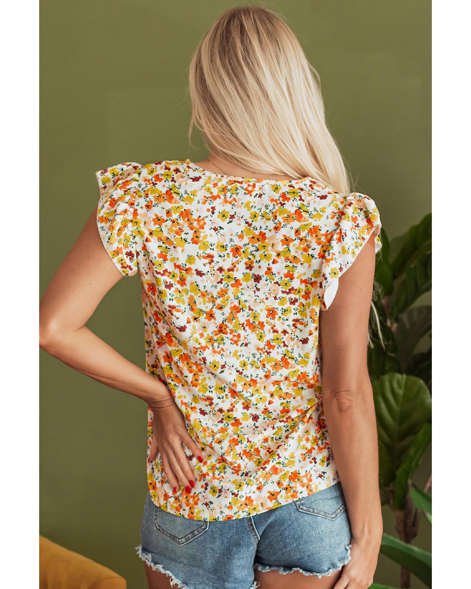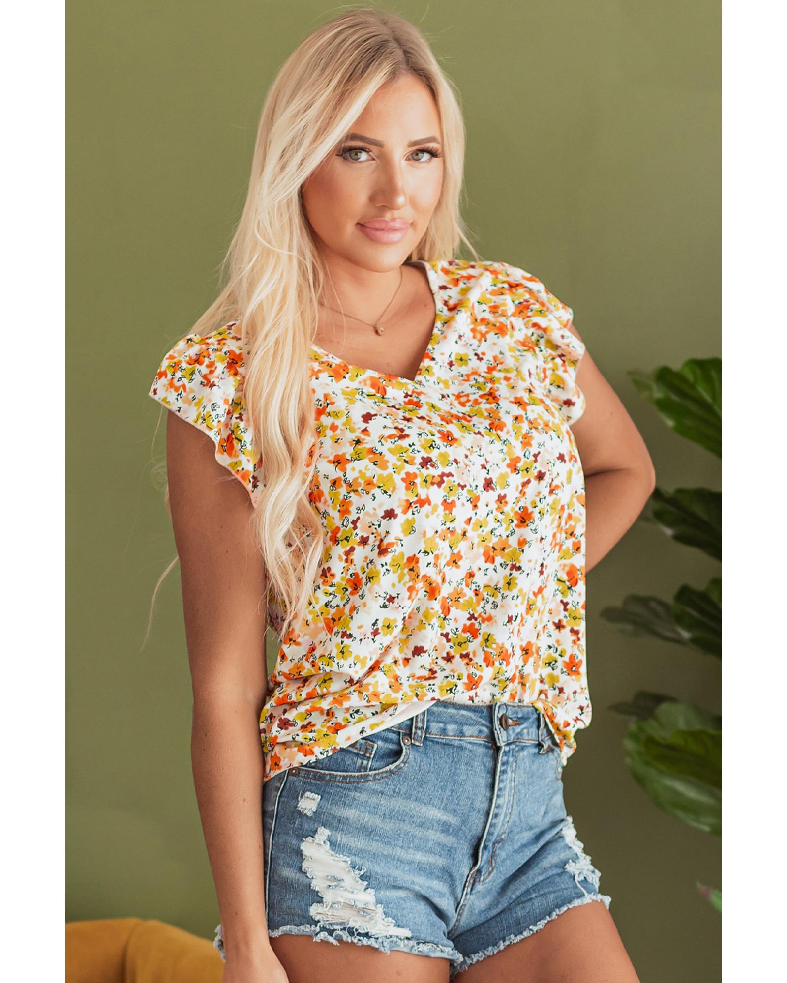 Green Floral Print Ruffled Sleeveless V Neck Tank Top – XL