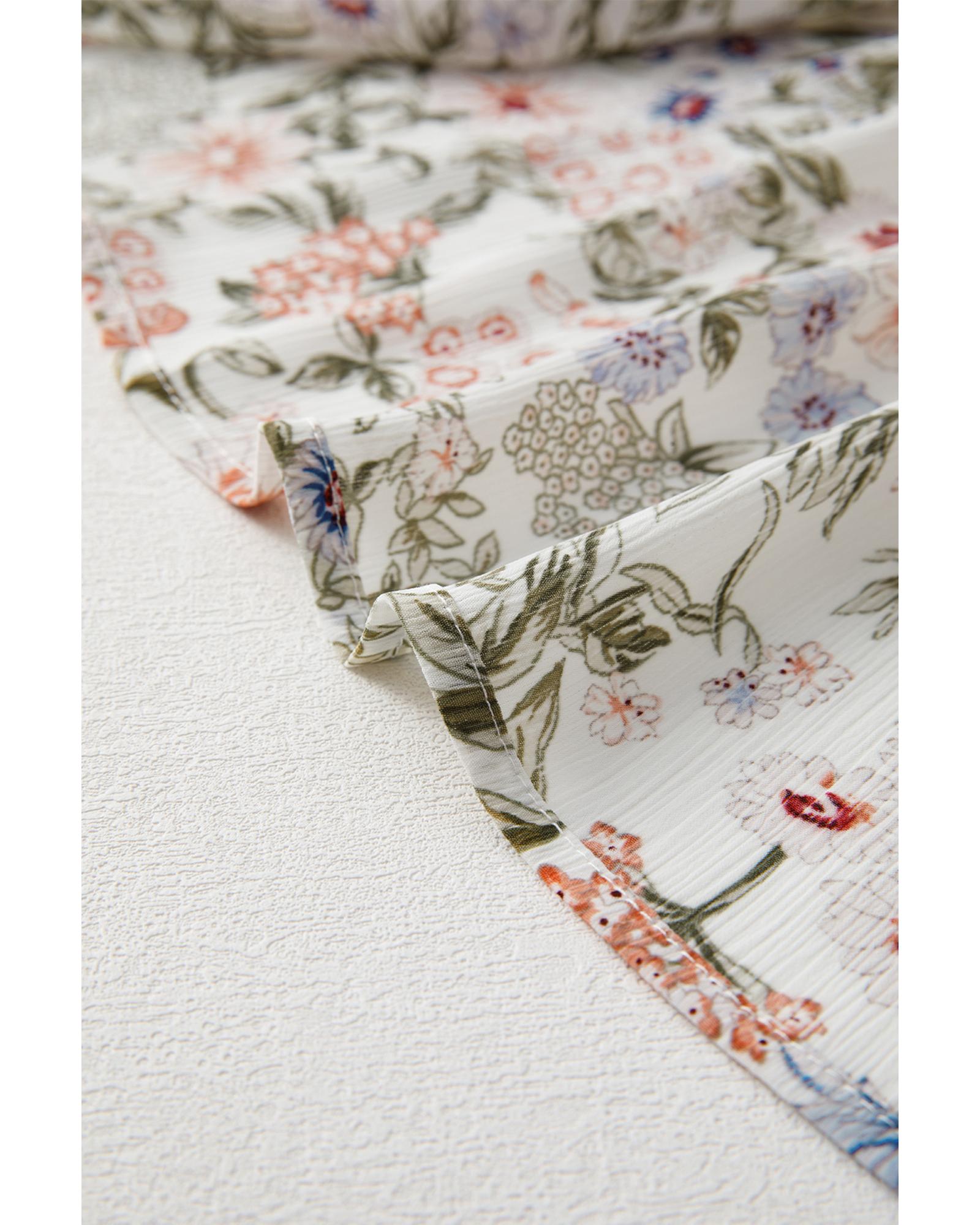 Green Floral Print Tiered Frilled Shirred Mock Neck Mini Dress – XL