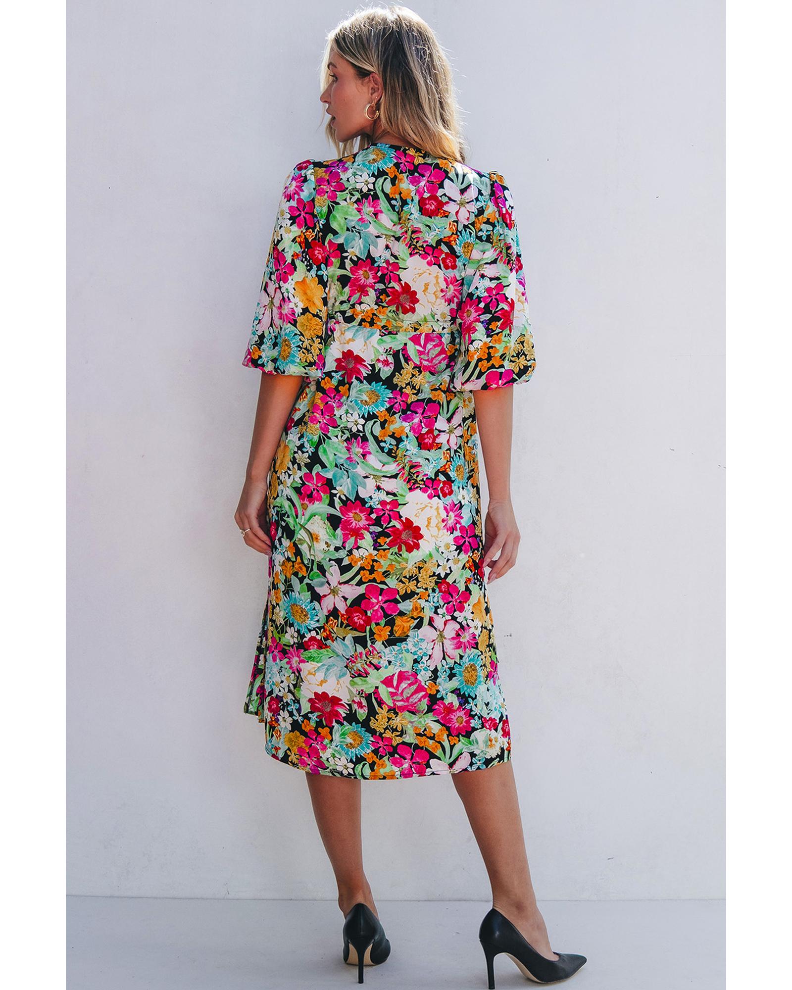 - Green floral puff sleeve dress
