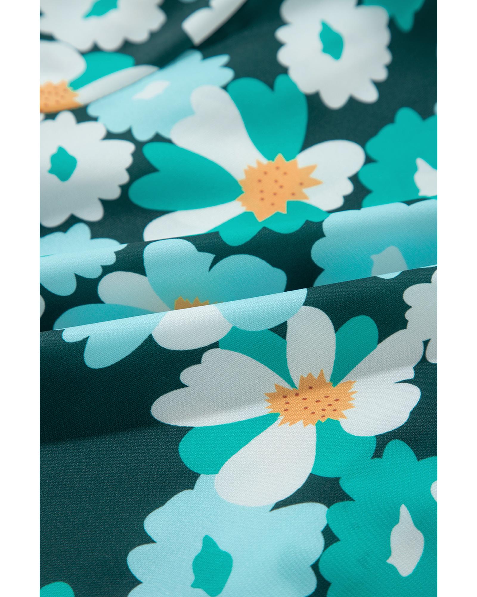 Green Floral Tiered Long Puff Sleeve Shirt Dress – XL