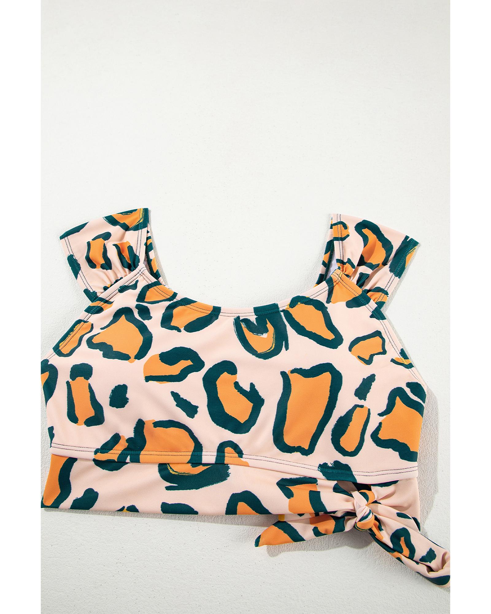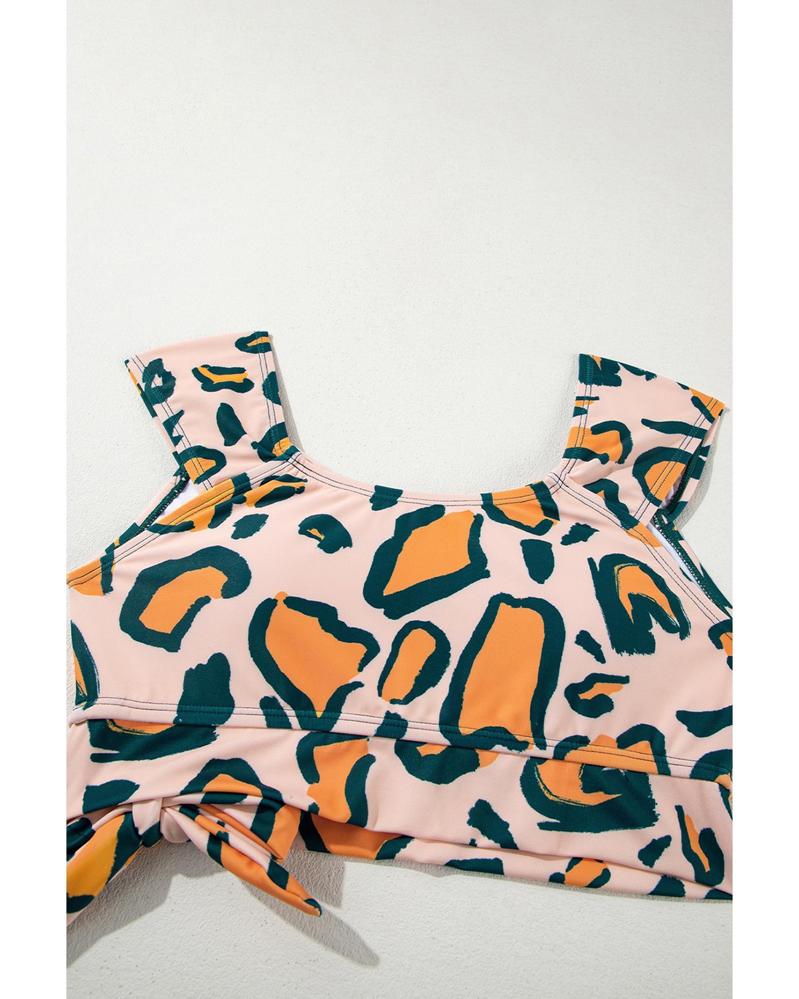 Green Leopard Print U Neck Knotted High Waist Bikini Set – XL