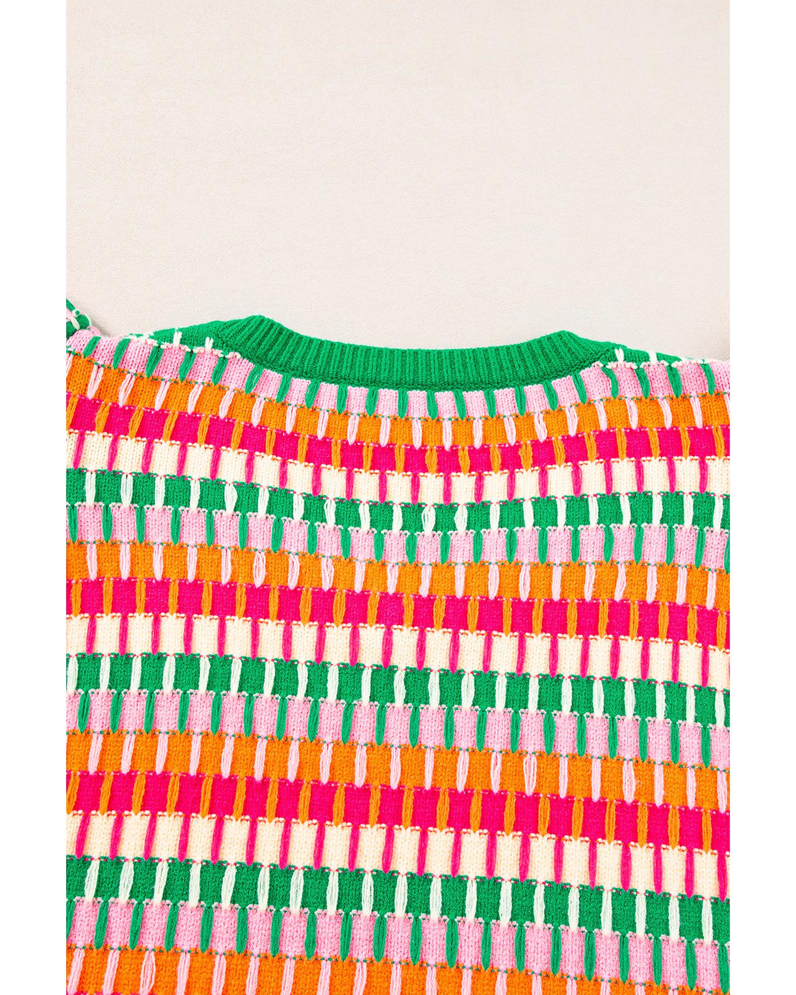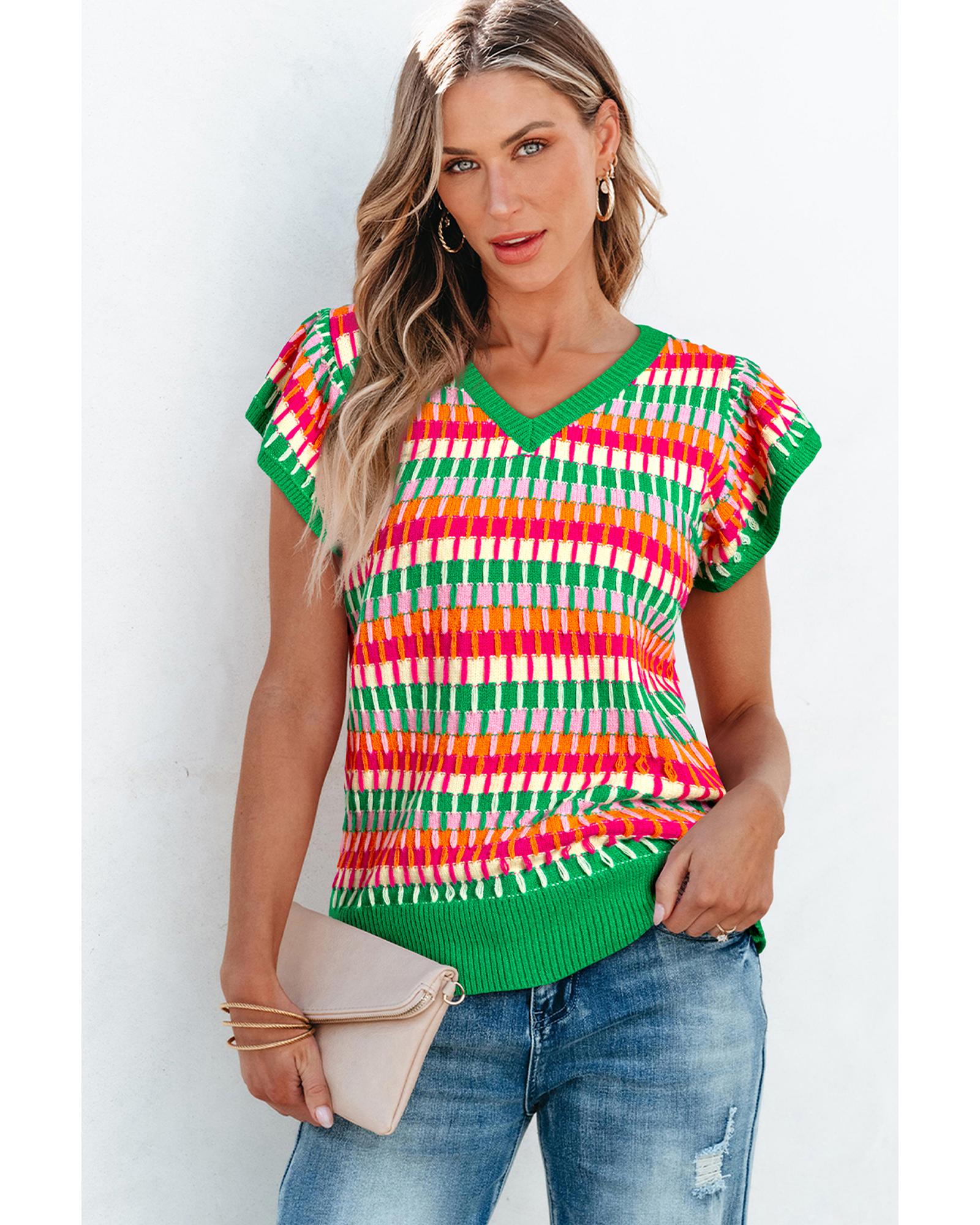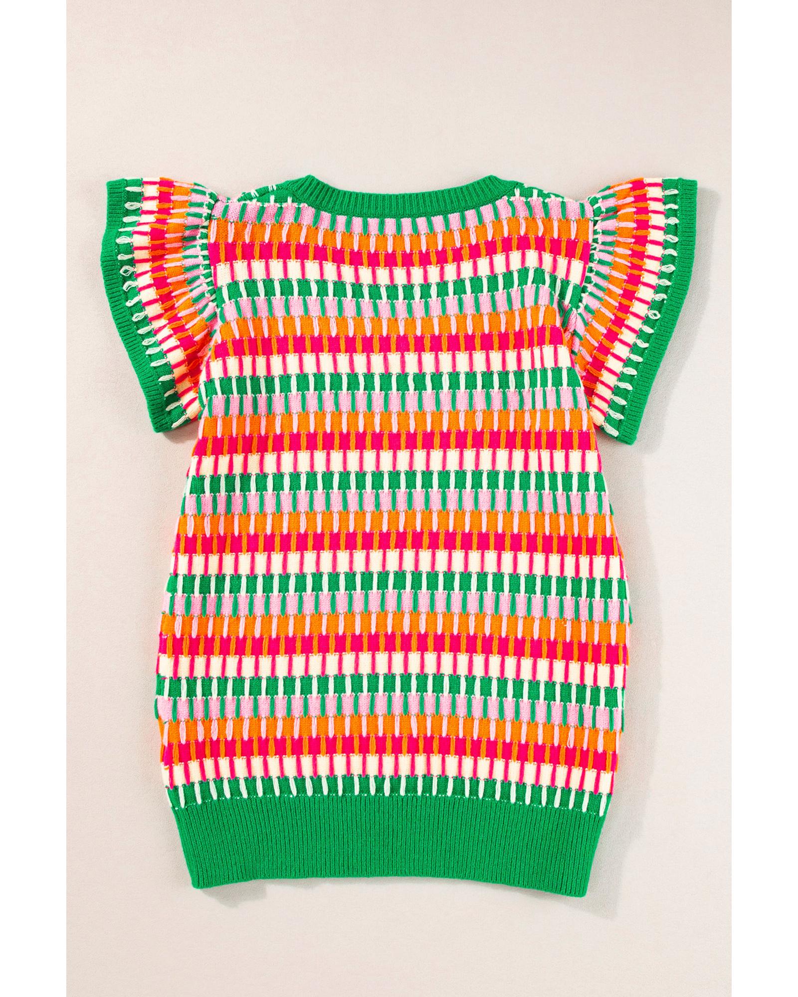 Green Multi Flutter Sleeve Knitted Sweater Top – XL