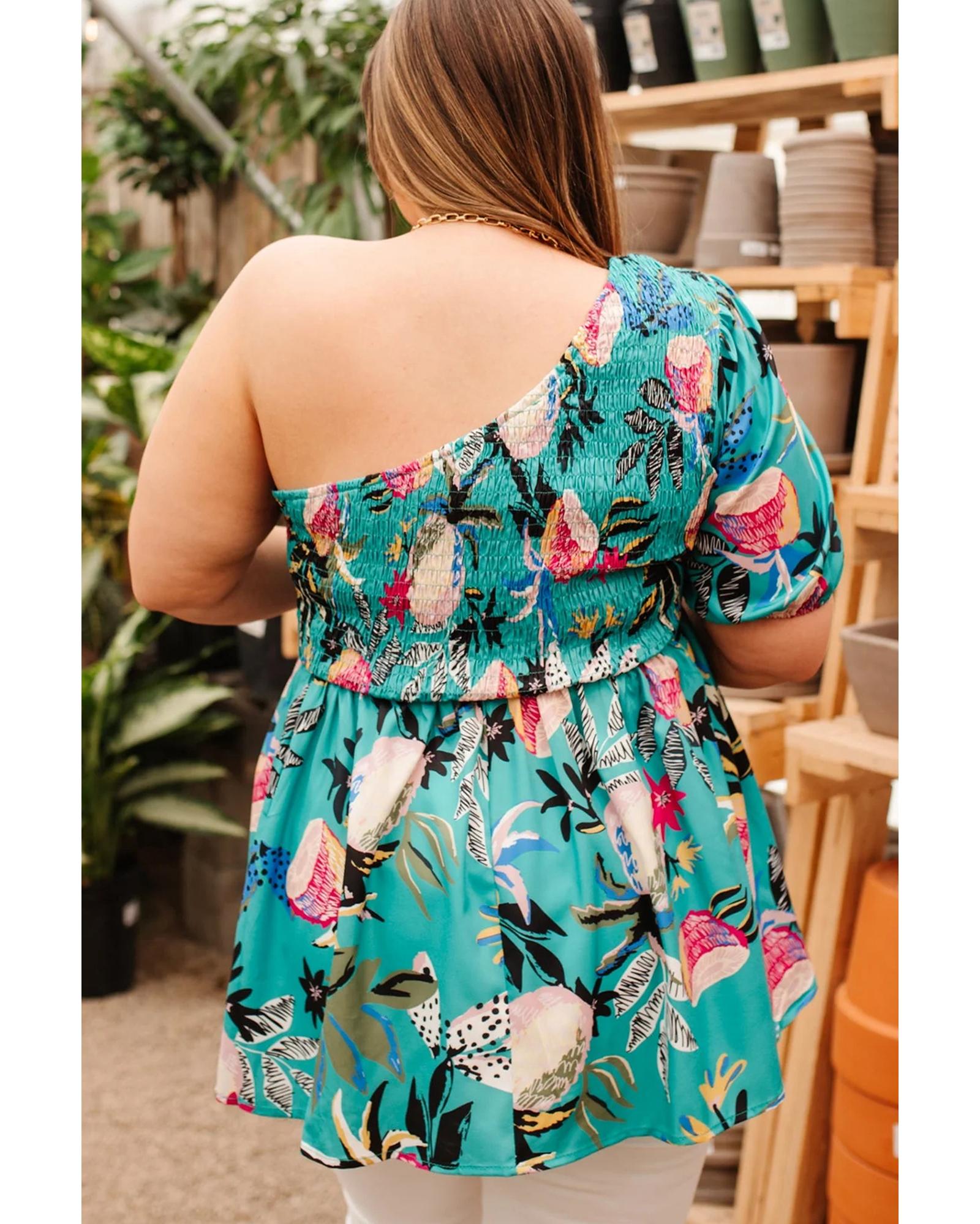 Green Plus Size Floral Smocked Bodice Single Puff Short Sleeve Babydoll Blouse – 1X