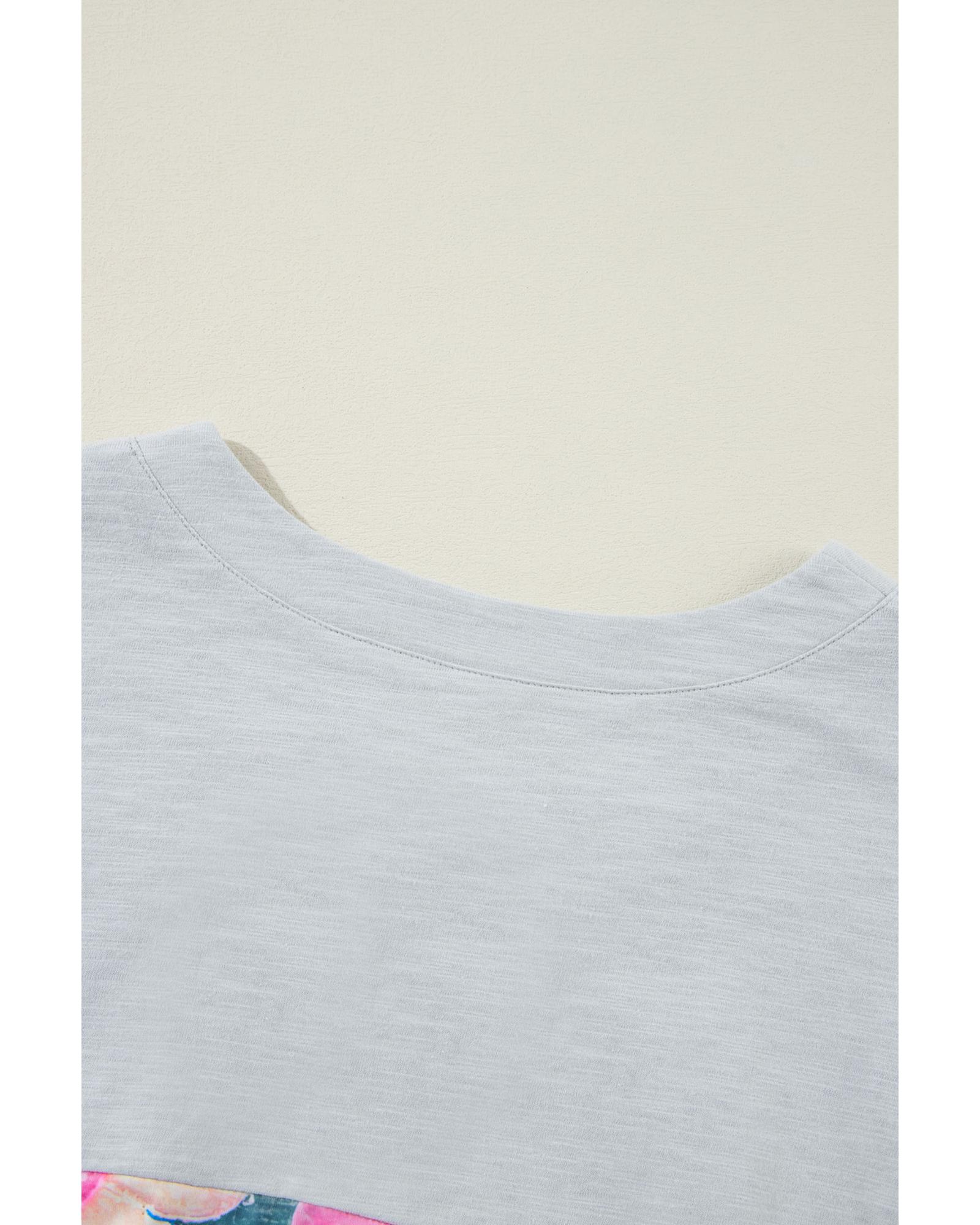 Green Plus Size Flower Patchwork Exposed Seam High Low Top - 2X