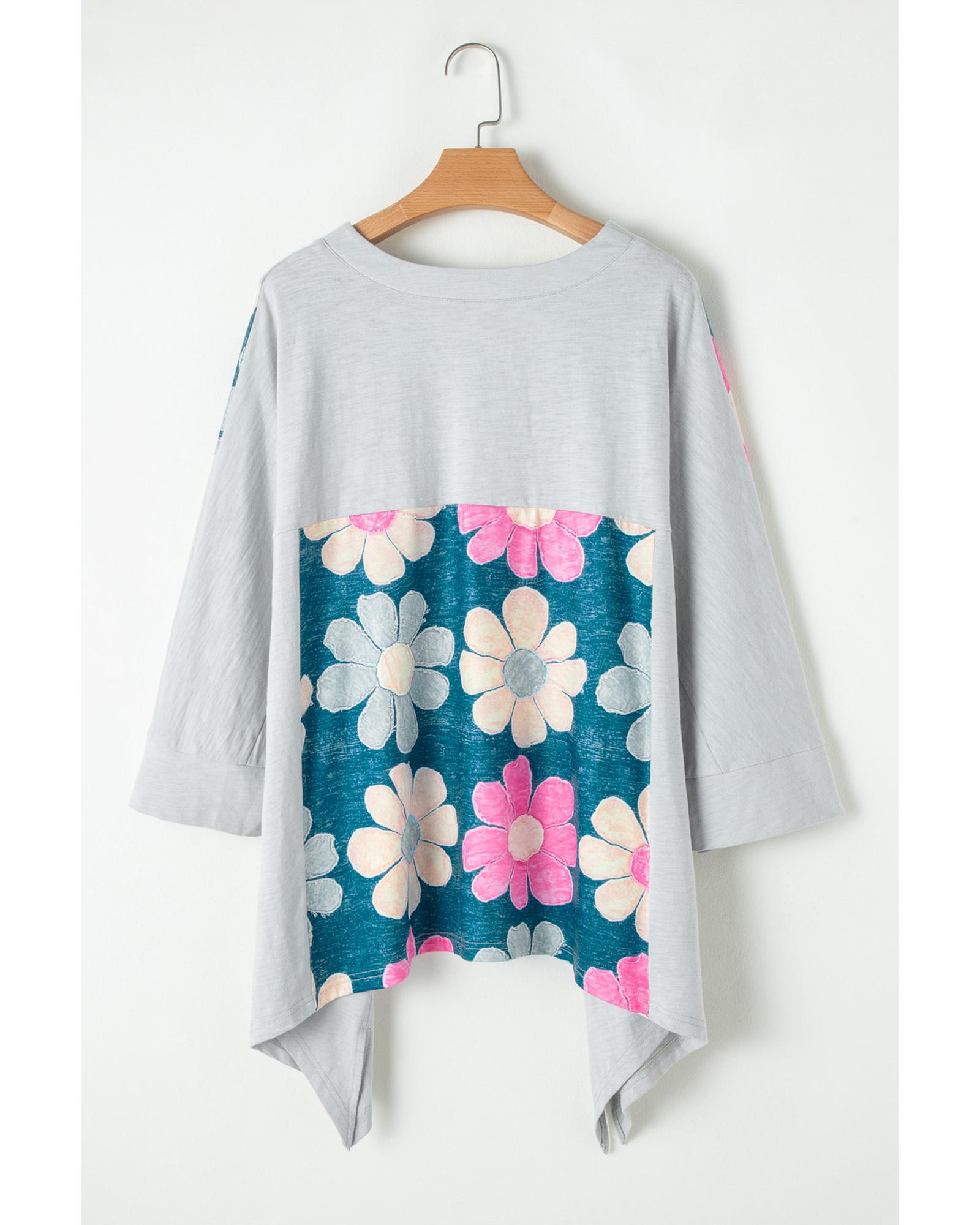 Green Plus Size Flower Patchwork Exposed Seam High Low Top – 3X