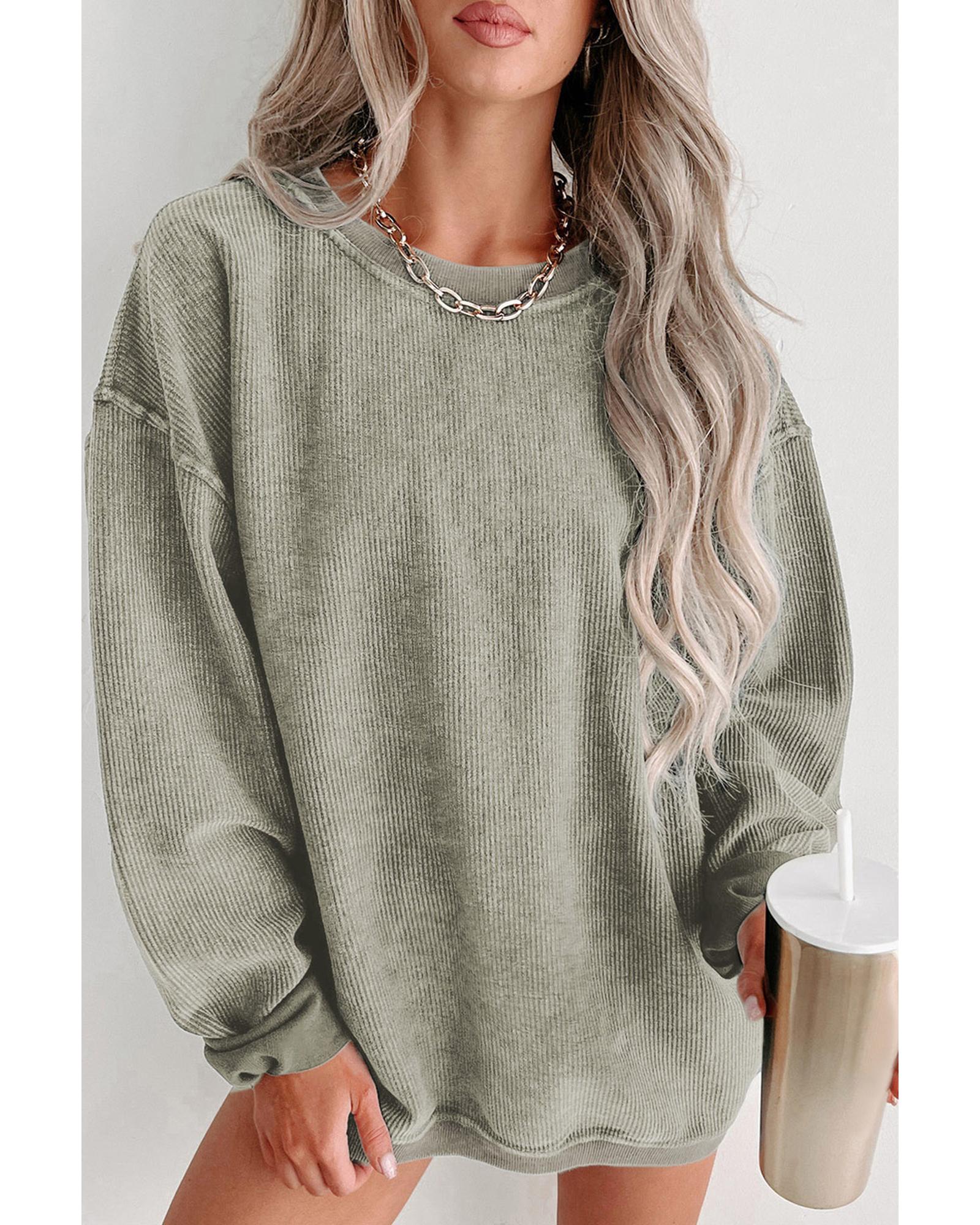- Green Solid Ribbed Knit Round Neck Pullover Sweatshirt