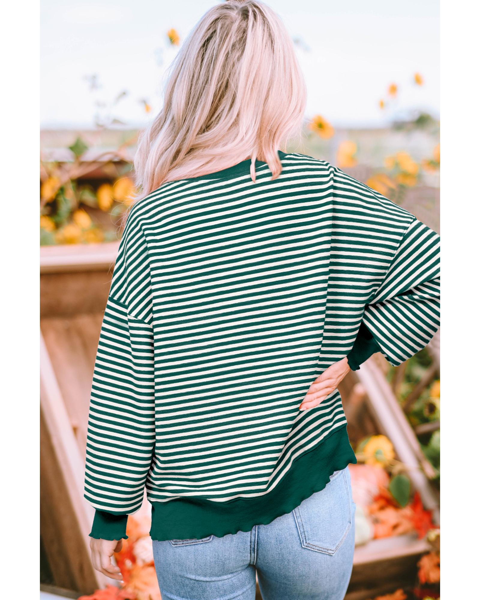 Green Stripe Chenille LUCKY Patched Pattern St Patrick Long Sleeve Top – L