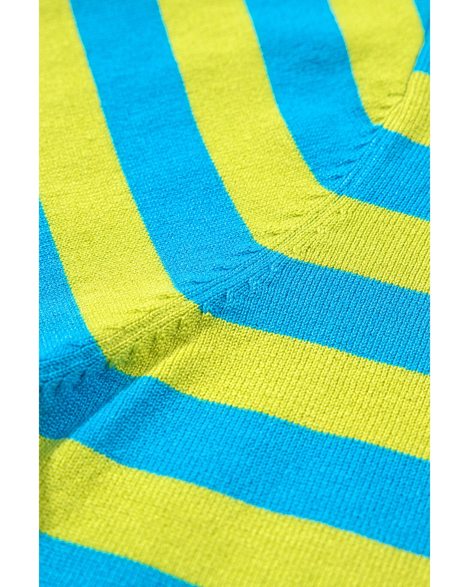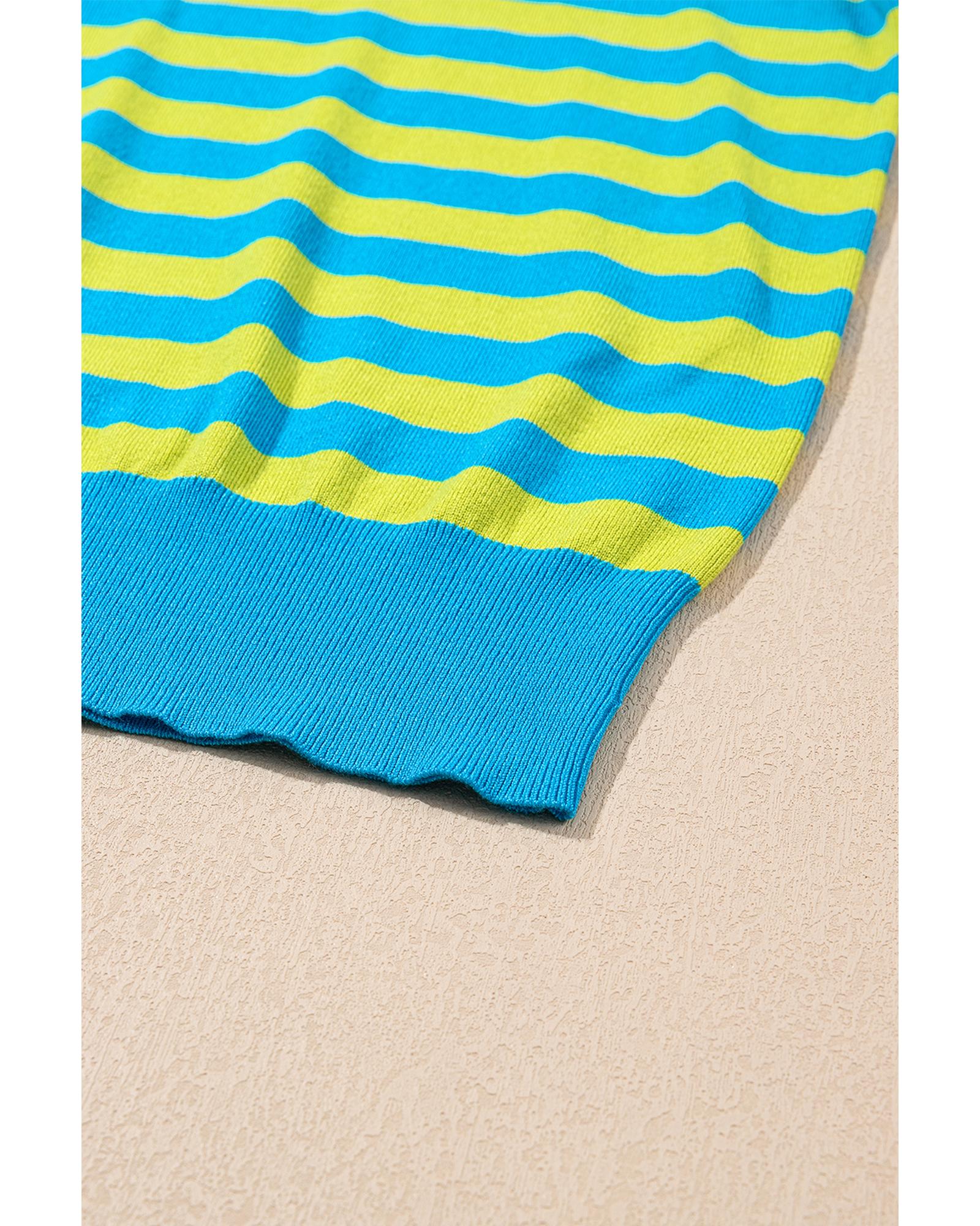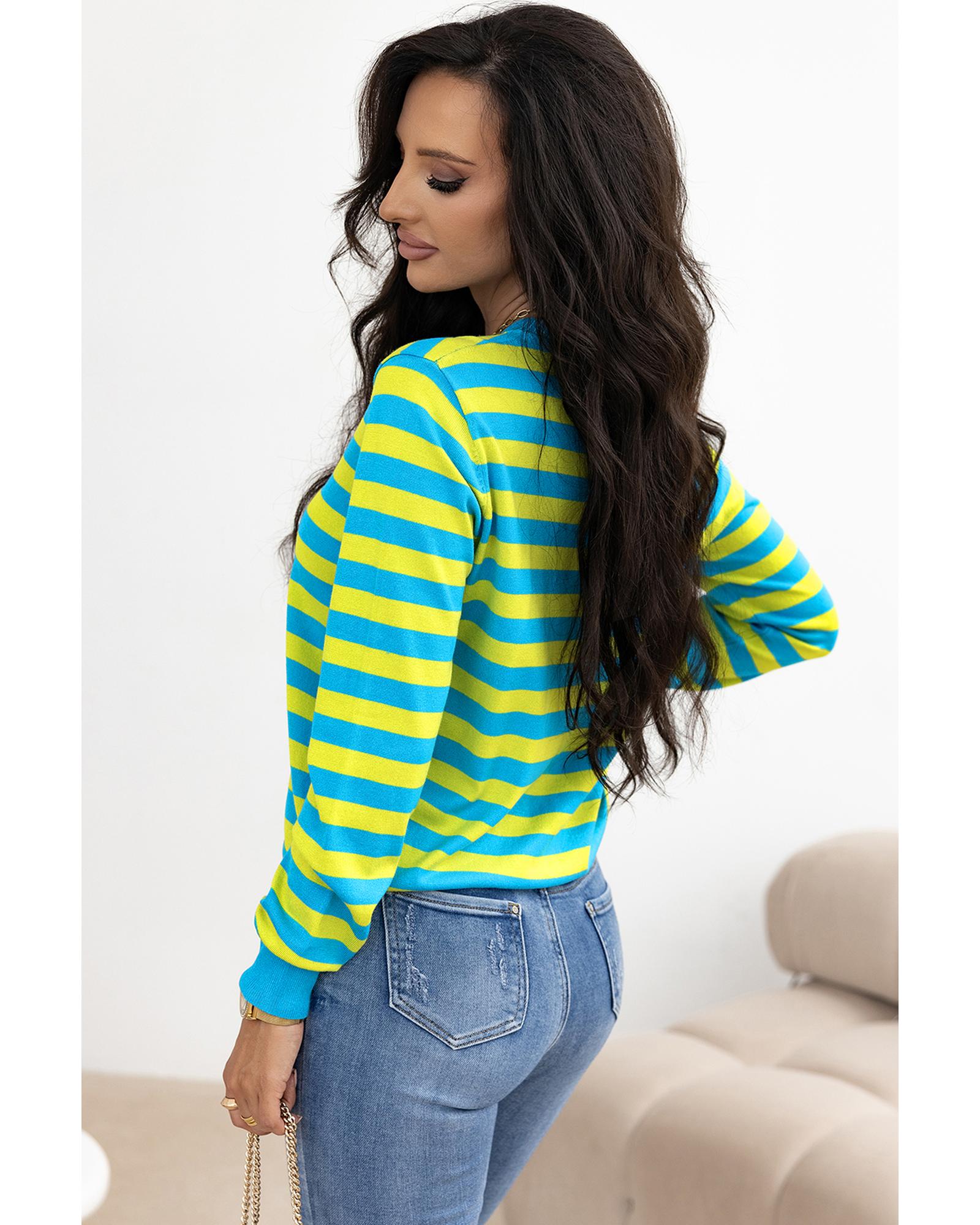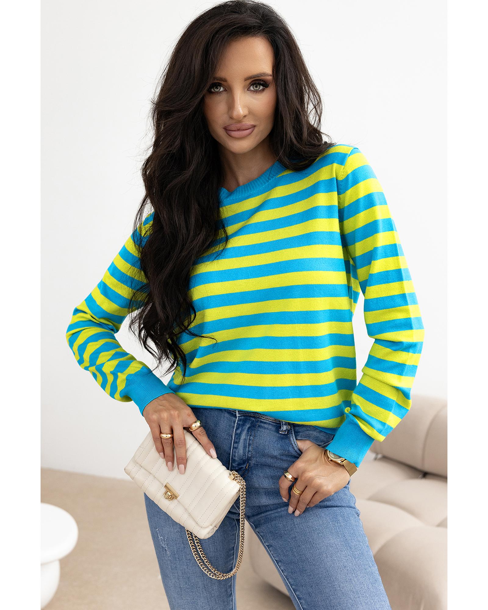 Green Stripe Crew Neck Drop Shoulder Casual Sweater – M
