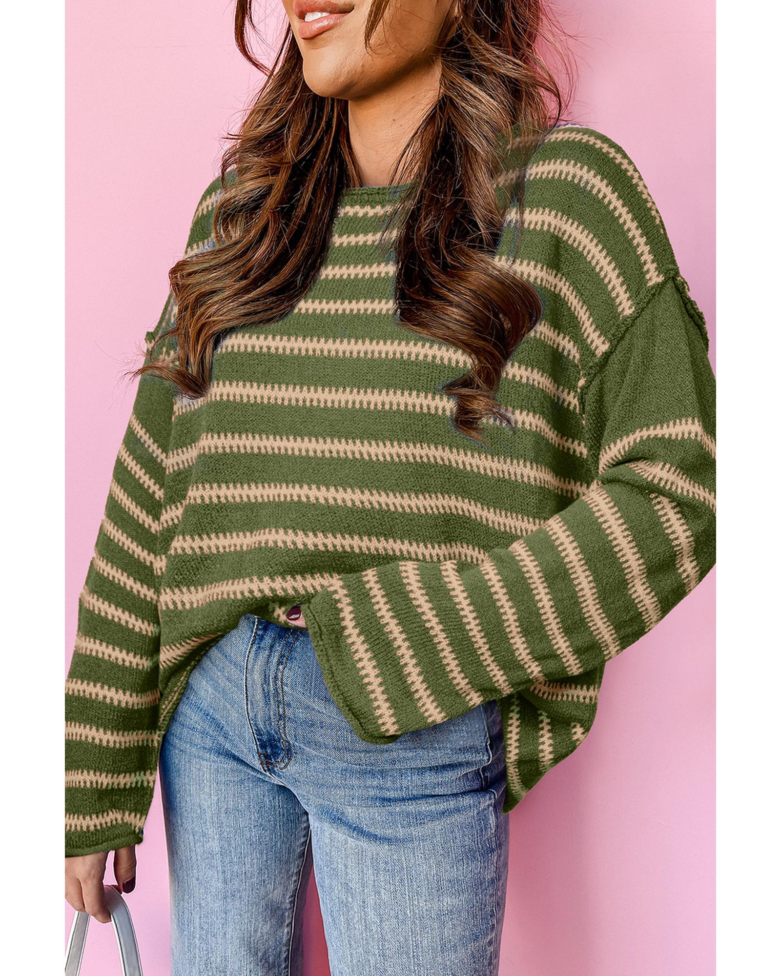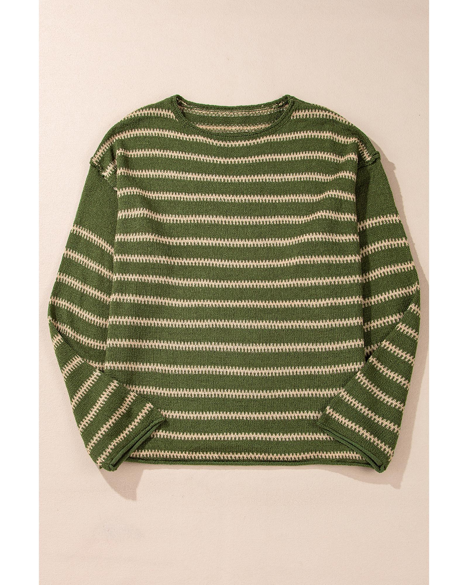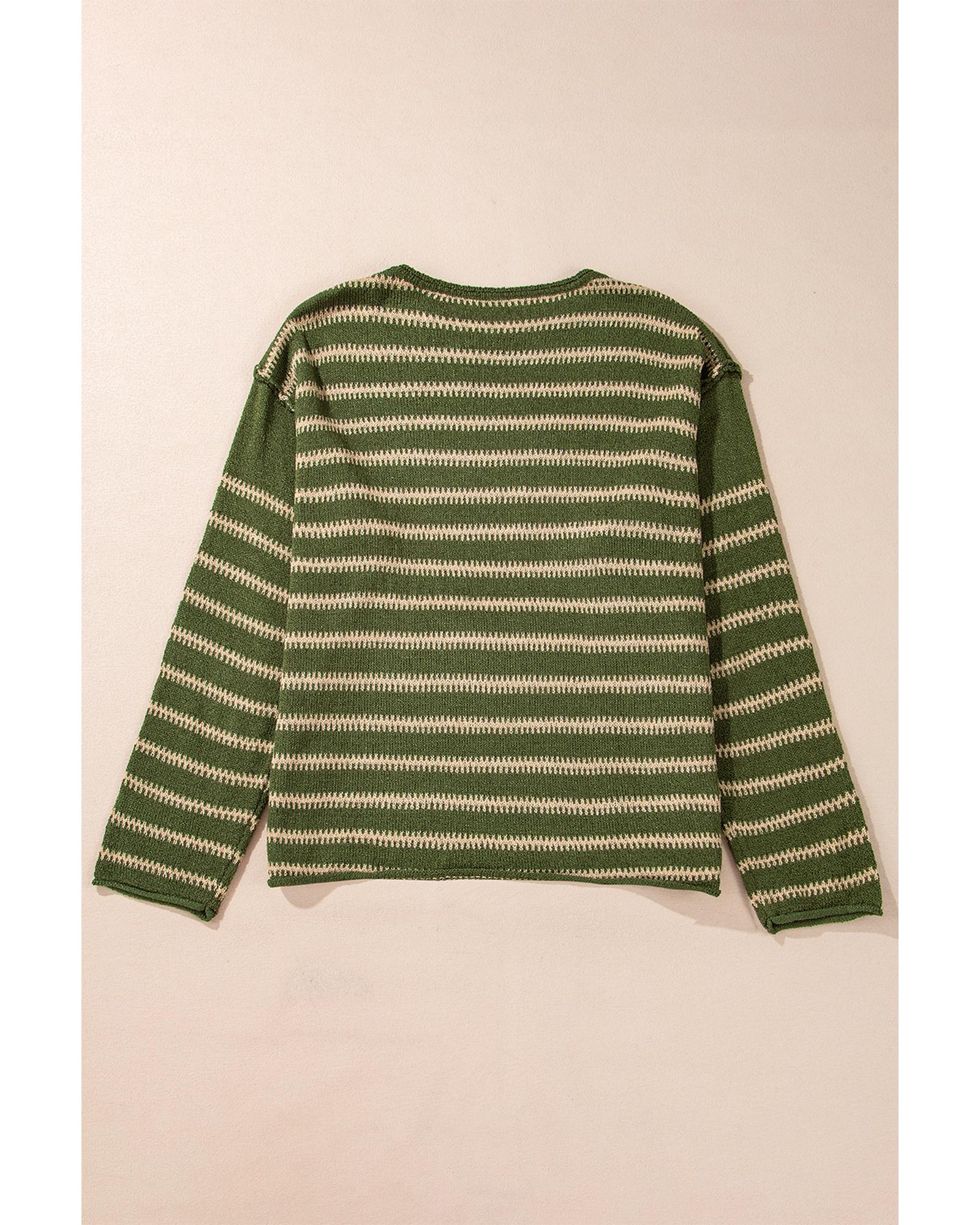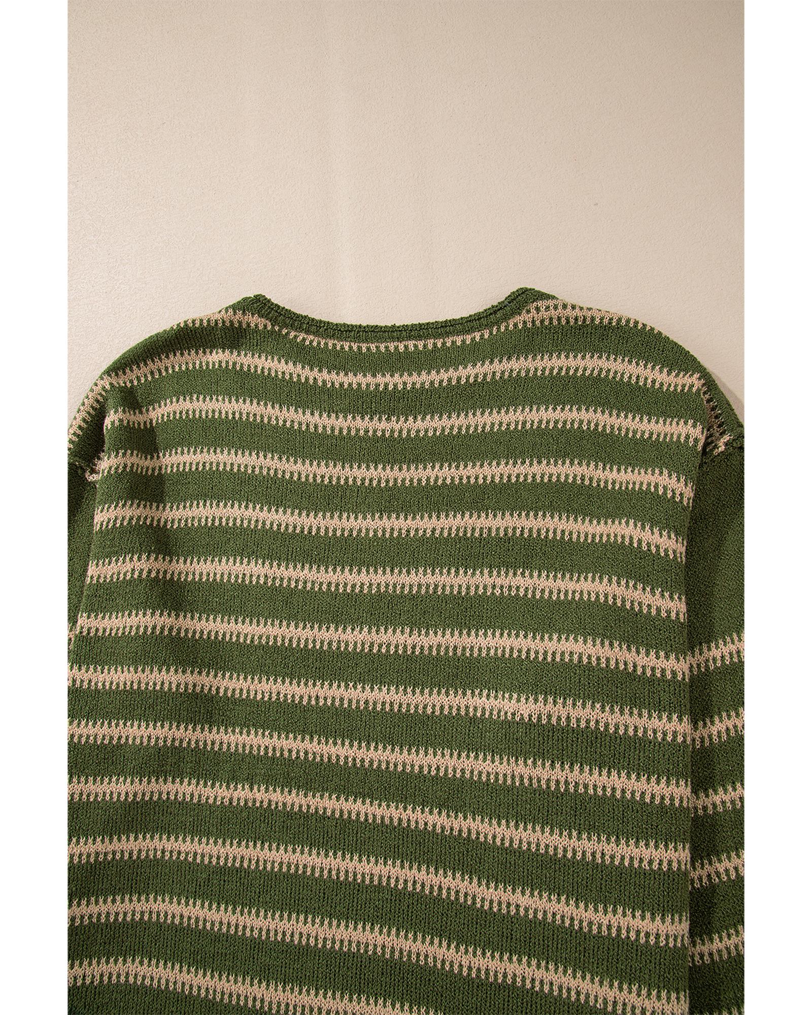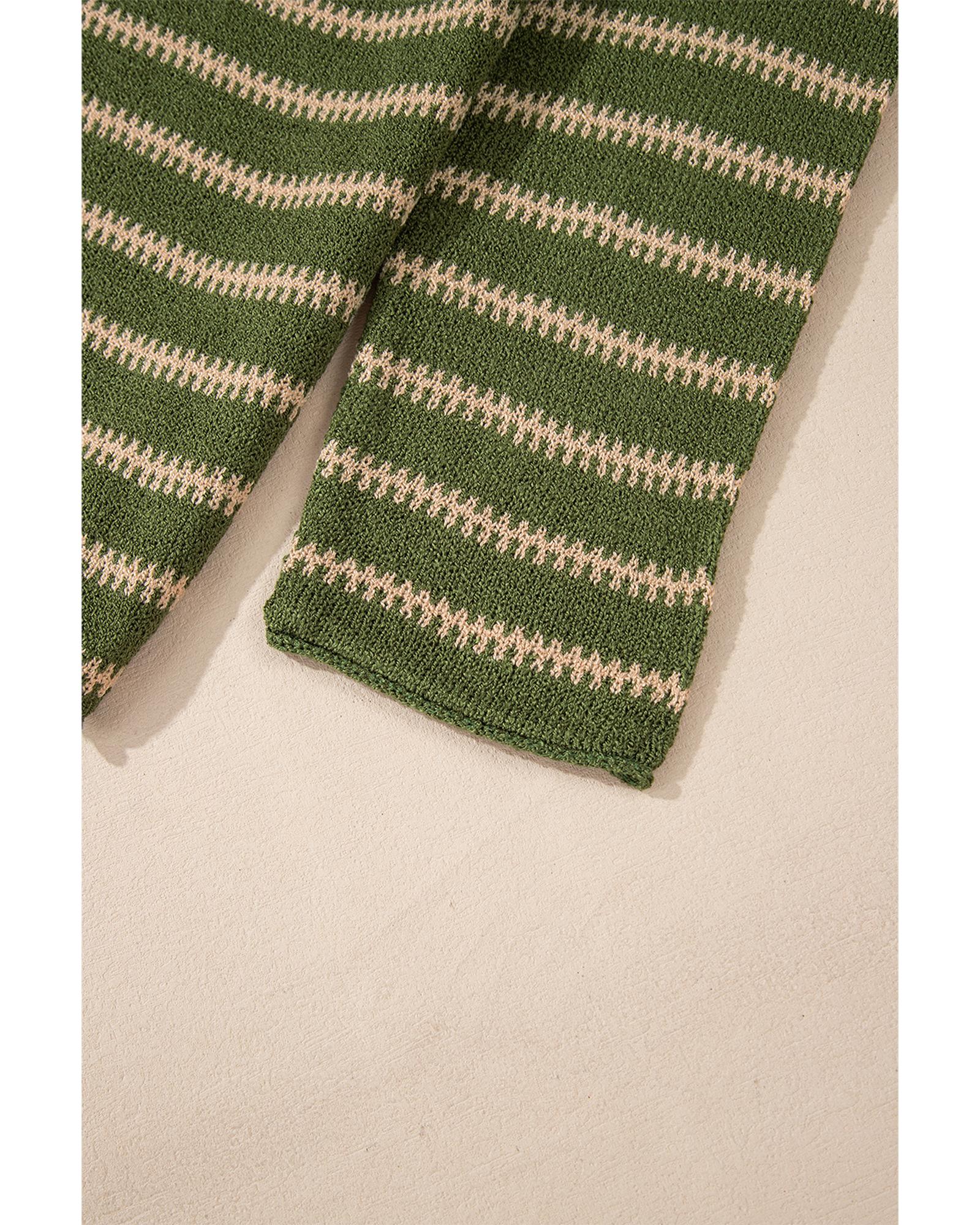 Light French Beige Crew Neck Cable Knit Short Sleeve Sweater - M