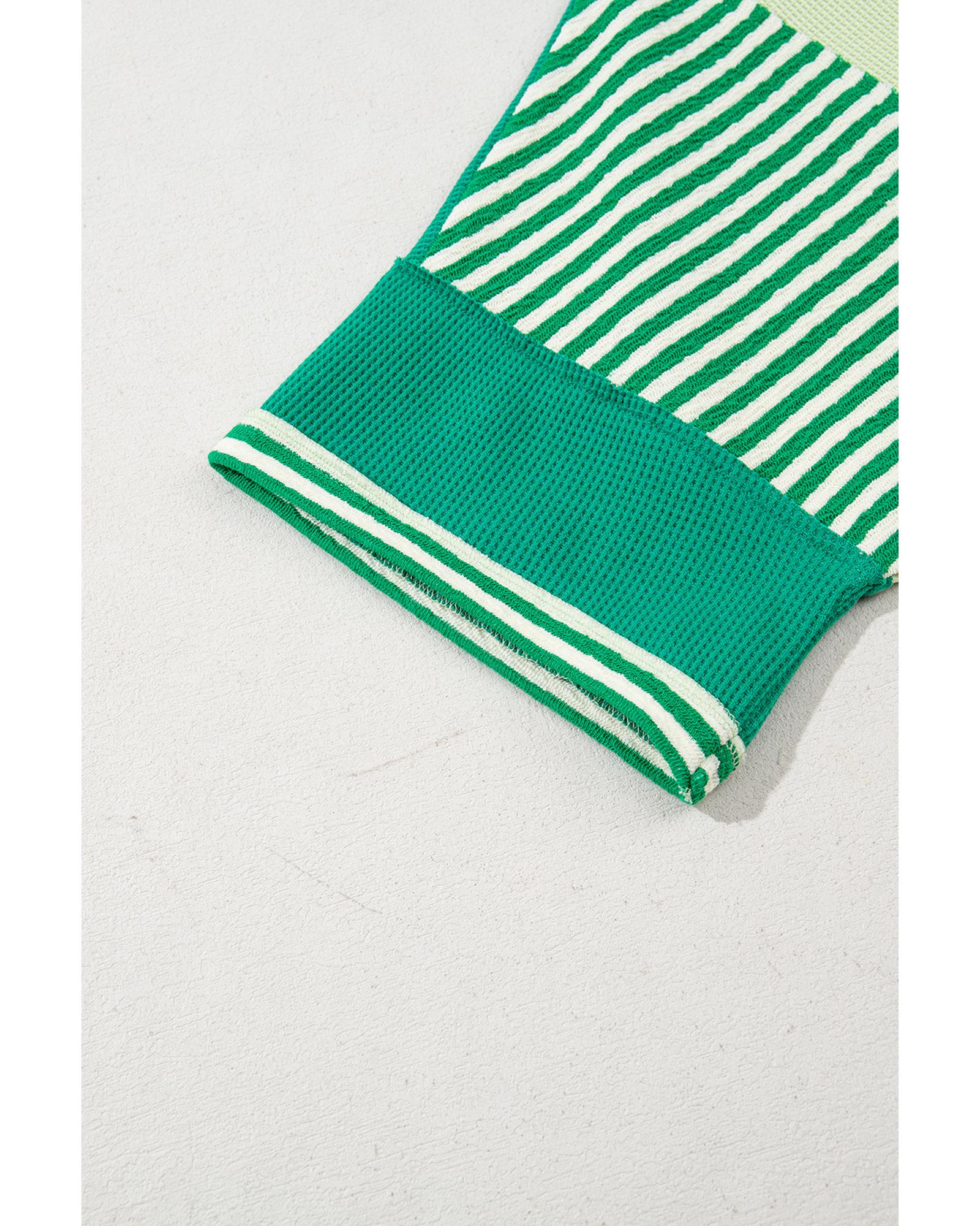 Green Stripe Patchwork Colorblock Plus Size T Shirt – 2X