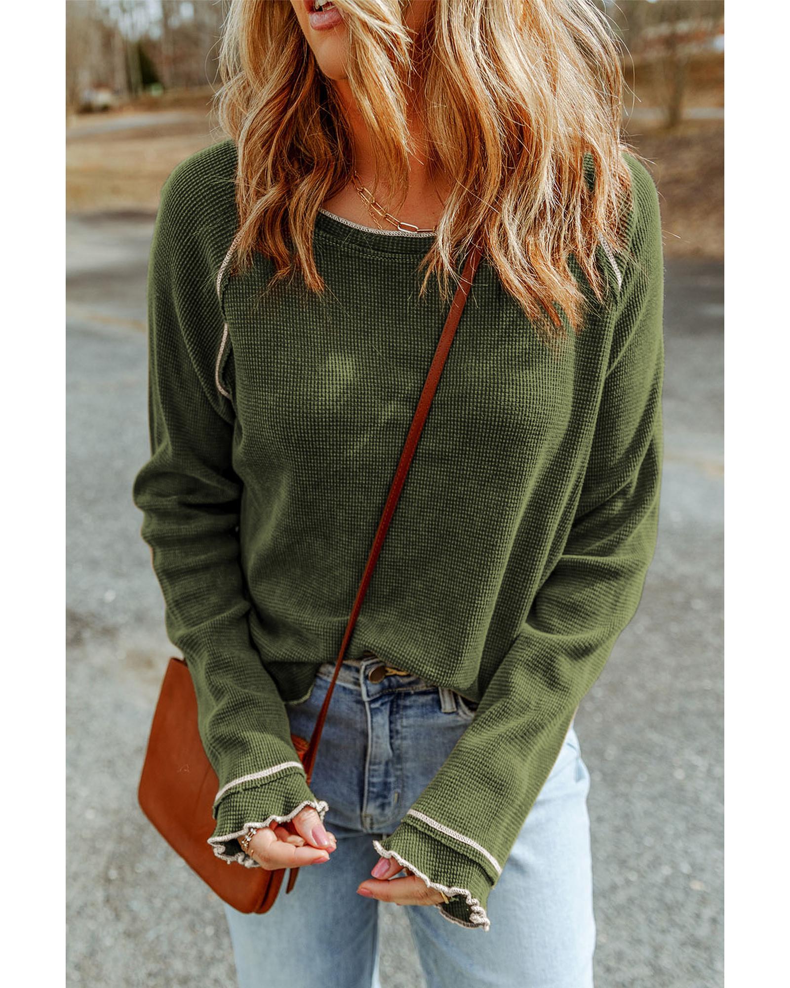 Khaki Contrast Cuffs Batwing Sleeve Loose Top - L