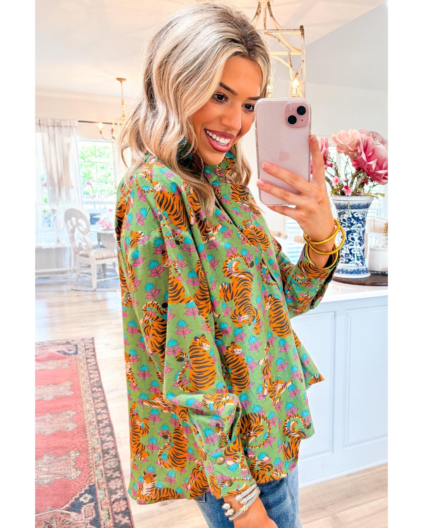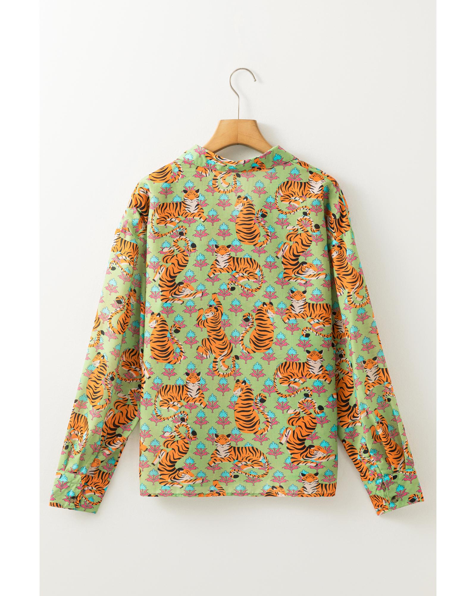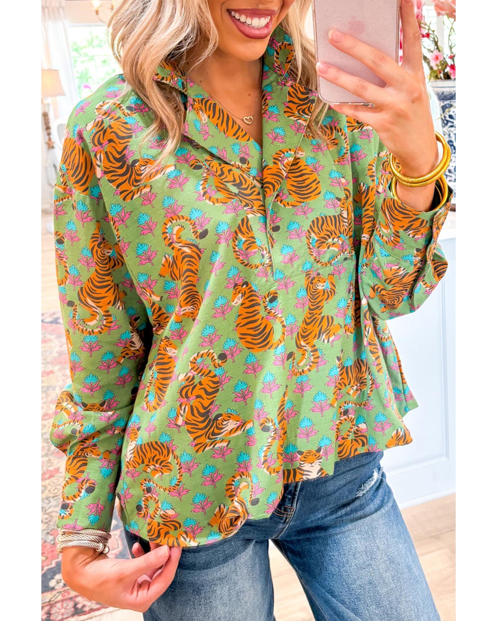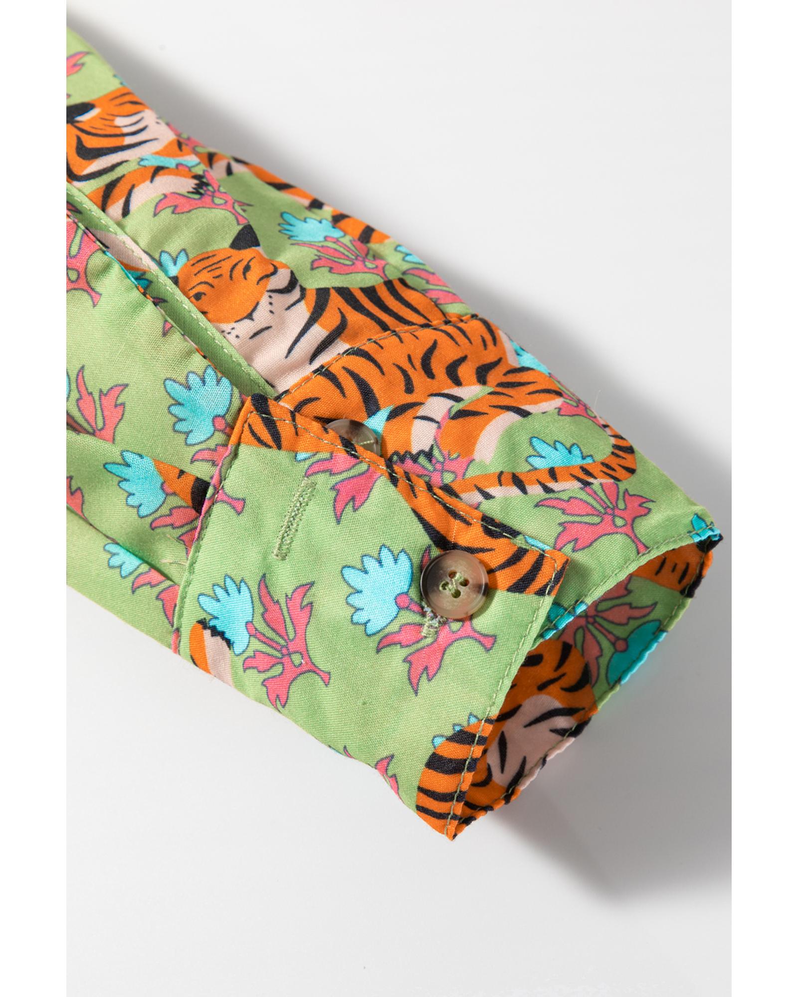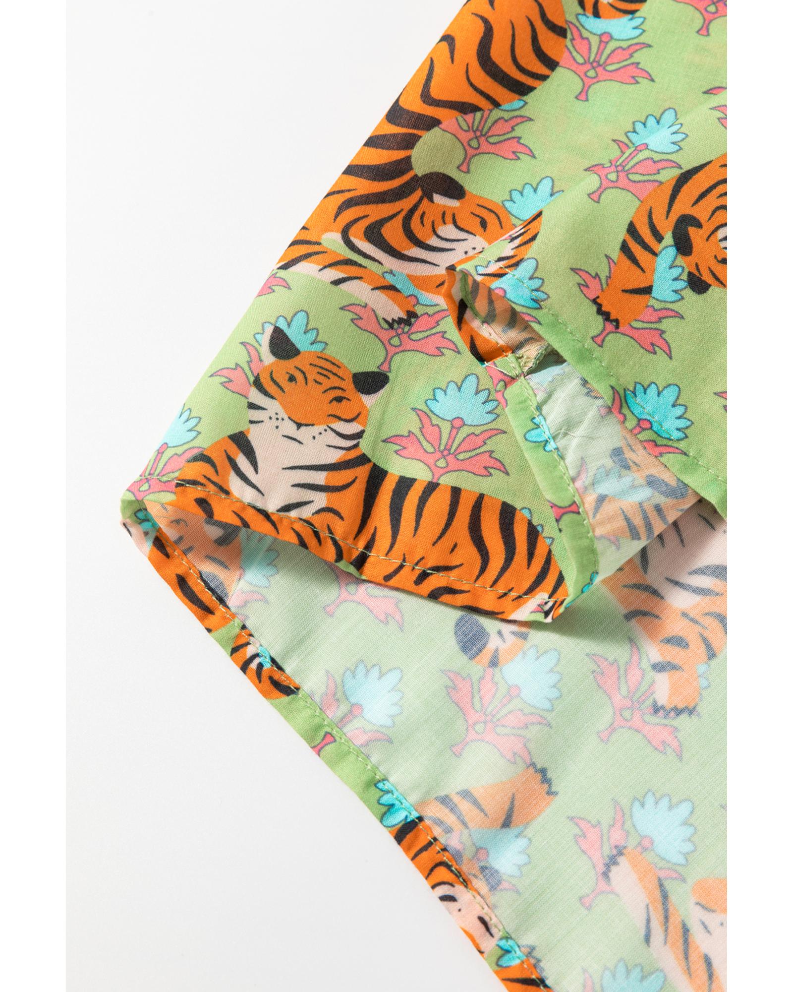 Green Tiger Floral Printed Collared V Neck Casual Shirt – XL