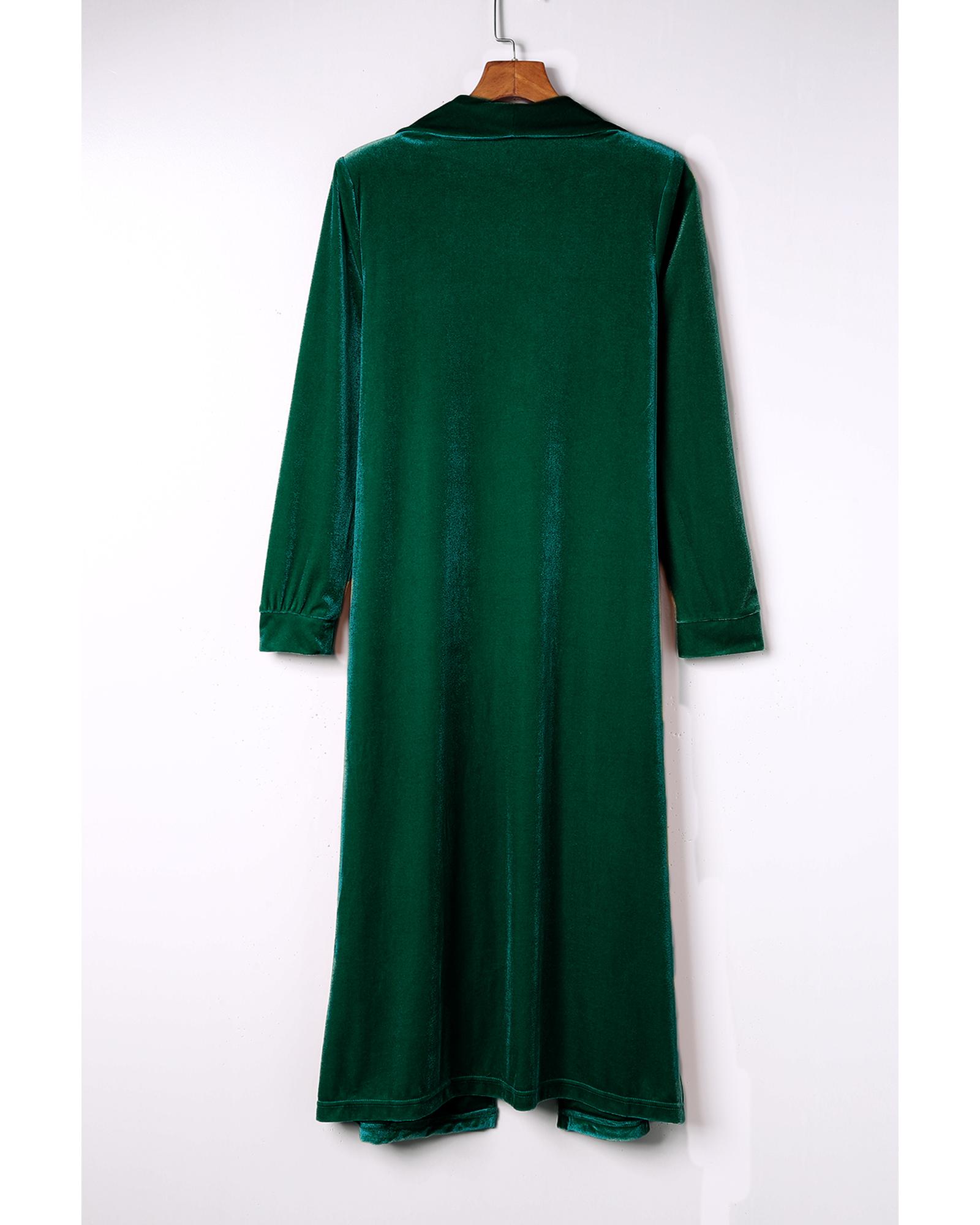 Green Velvet Open Front Pocketed Long Duster – 2XL