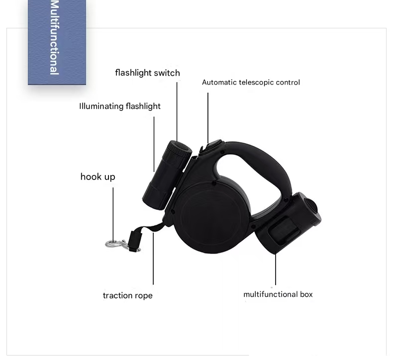 - 3-in-1 Multifunctional Design: This leash integrates a retractable lead, a bright LED flashlight, and a convenient pet waste bag dispenser. Say goodbye to juggling multiple items and enjoy streamlined walks.