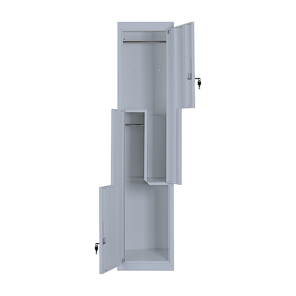 Our L-shaped, two-door vertical locker is a specially designed space-saving solution that provides the functionality for clothes and items storage, for 2 users. It's the ideal solution for personal use in the home or an apartment; or stack several units together for business needs like in schools, gyms, or work areas.