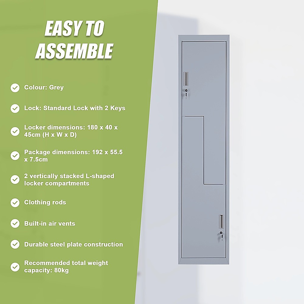- Locker dimensions: 180 x 40 x 45cm (H x W x D)