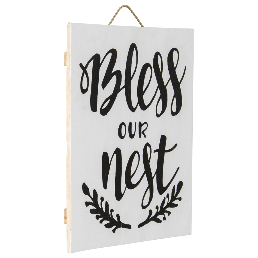 Handcrafted Monochrome Bless Our Nest Wall Art 30x2cm