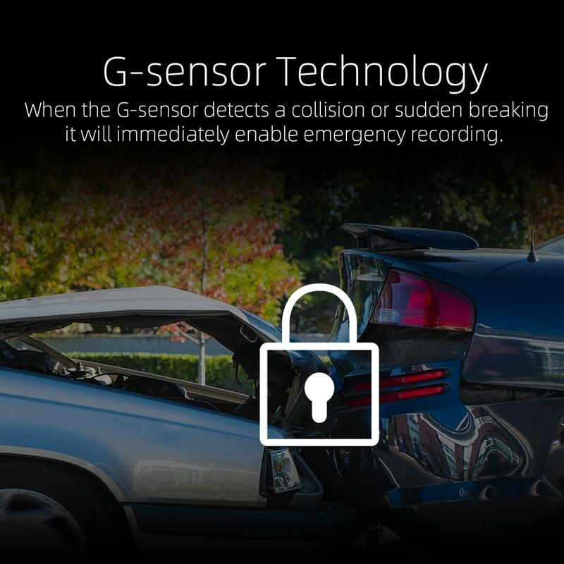 • G-Sensor (emergency recording): locks recorded video in case of collision