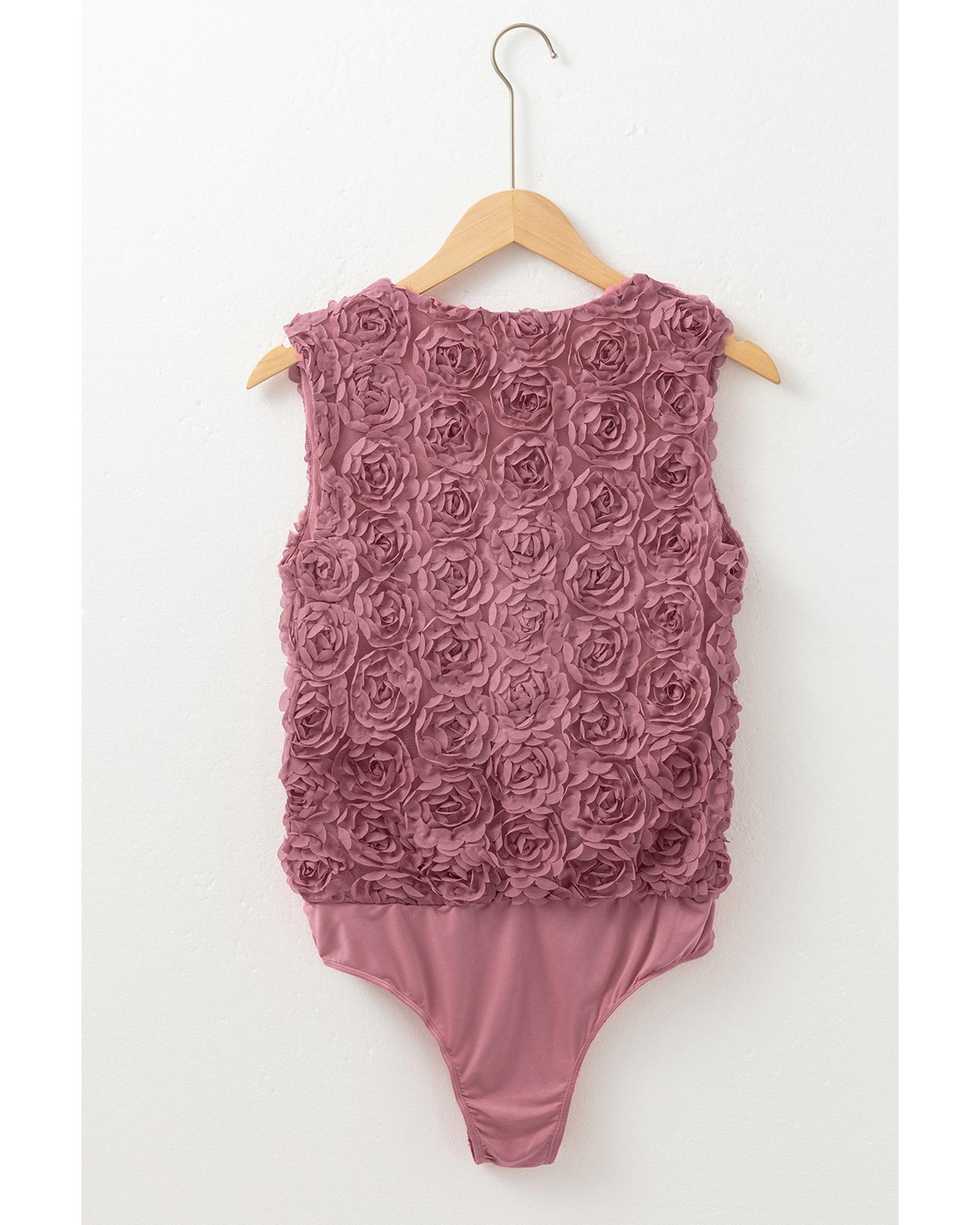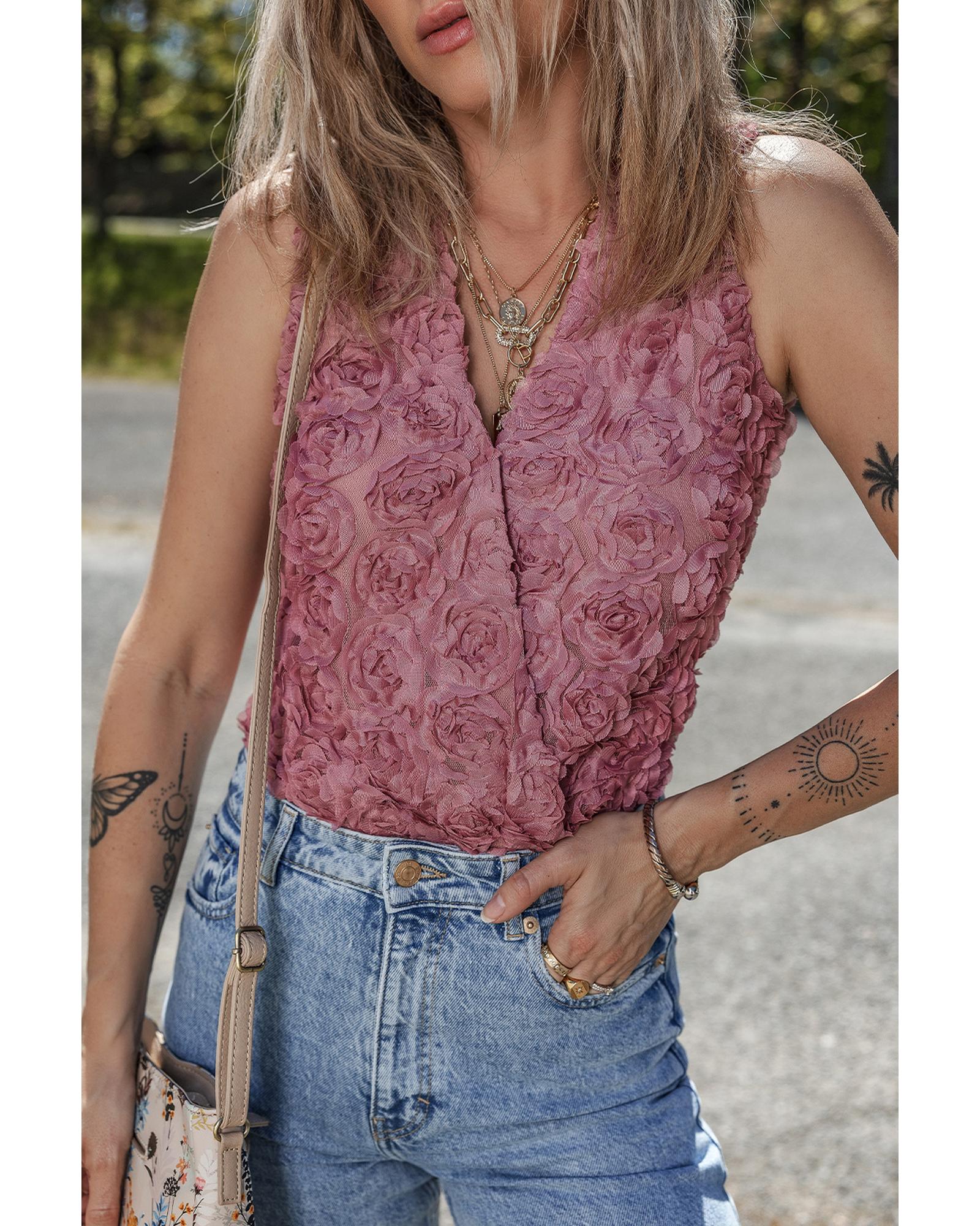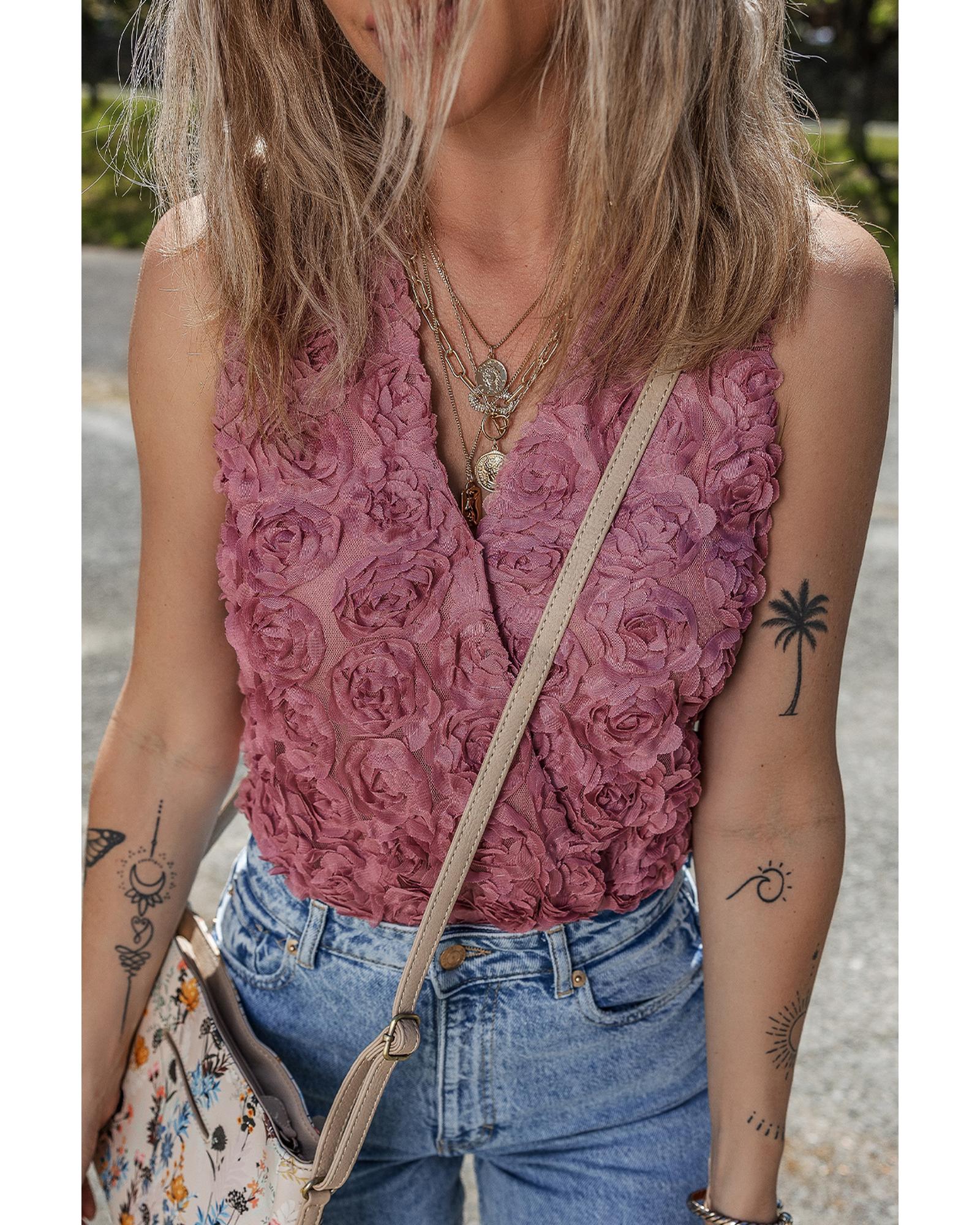 Heather Floral Textured V Neck Wrapped Sleeveless Bodysuit – S