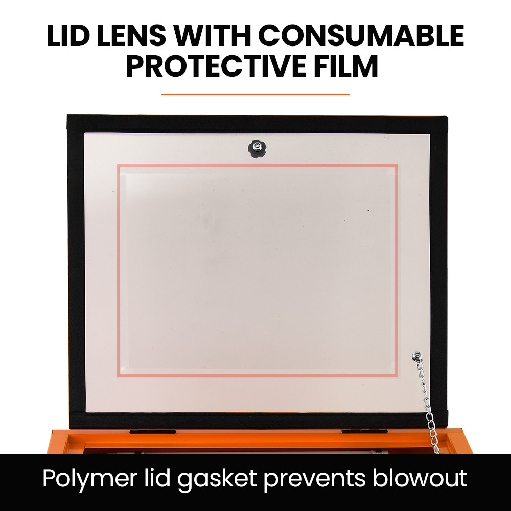 The moulded protective gloves ensure safe handling, while the internal LED light provides optimal visibility for your work. It includes 4, 5, 6, and 7mm nozzles, allowing for a wide range of blasting medium choices. Plus, with an operating pressure of 40 – 80 PSI with a minimum of 5 CFM, you can adjust the blasting strength to suit your needs.