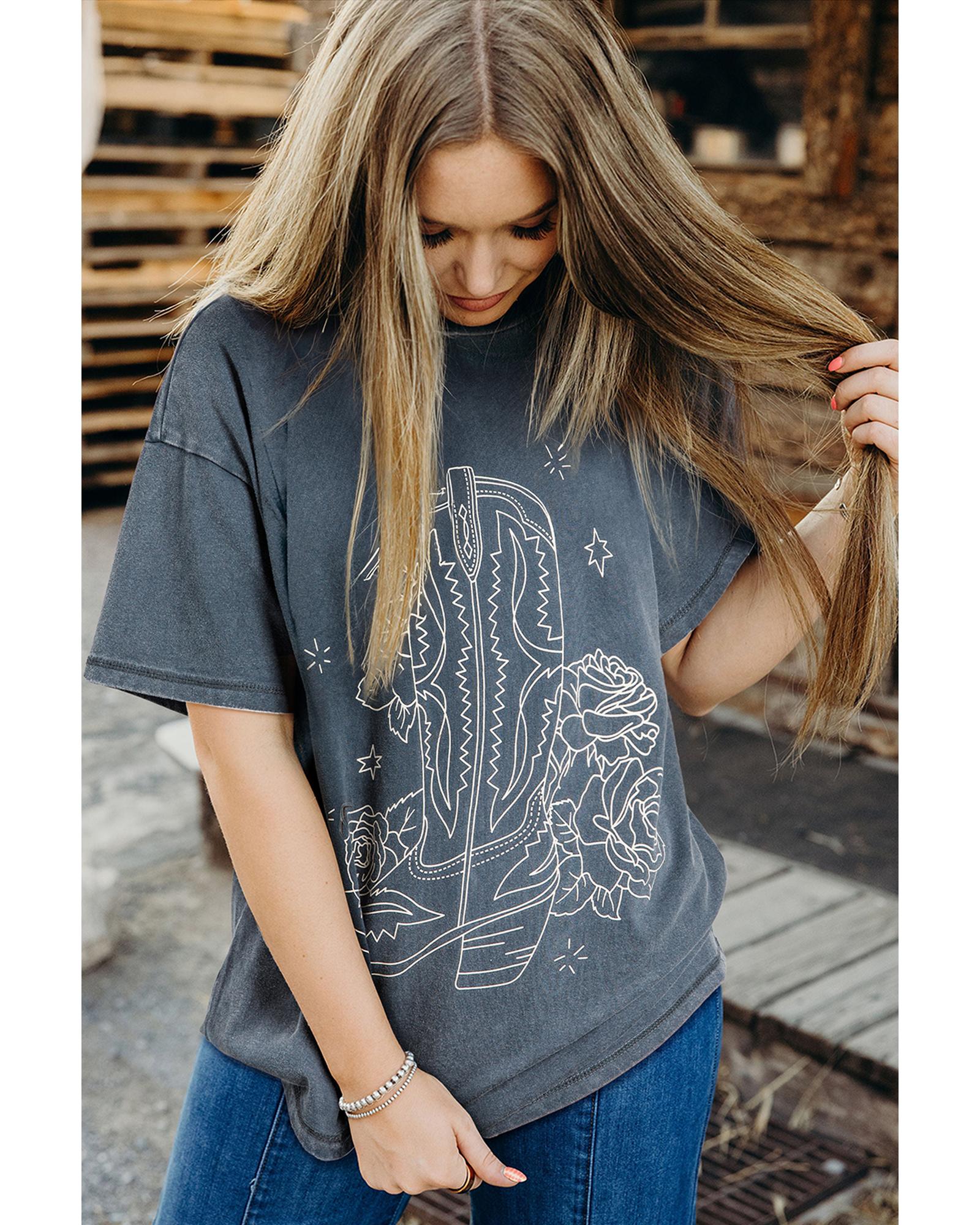 High-Rise Western Cowboy Boots Graphic Tee – XL