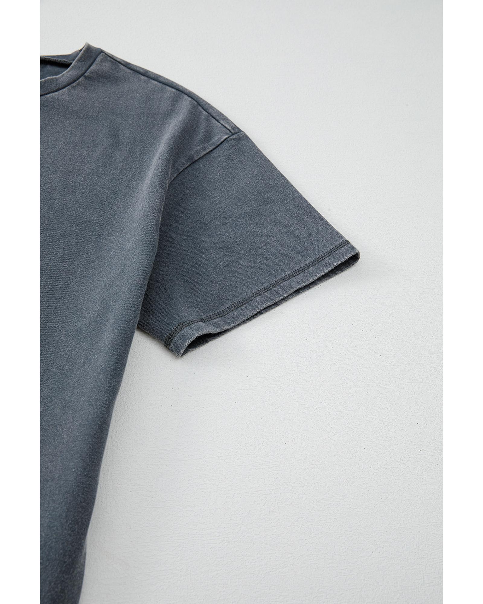 Black Pearl Beaded Drop Shoulder Crewneck T Shirt - S