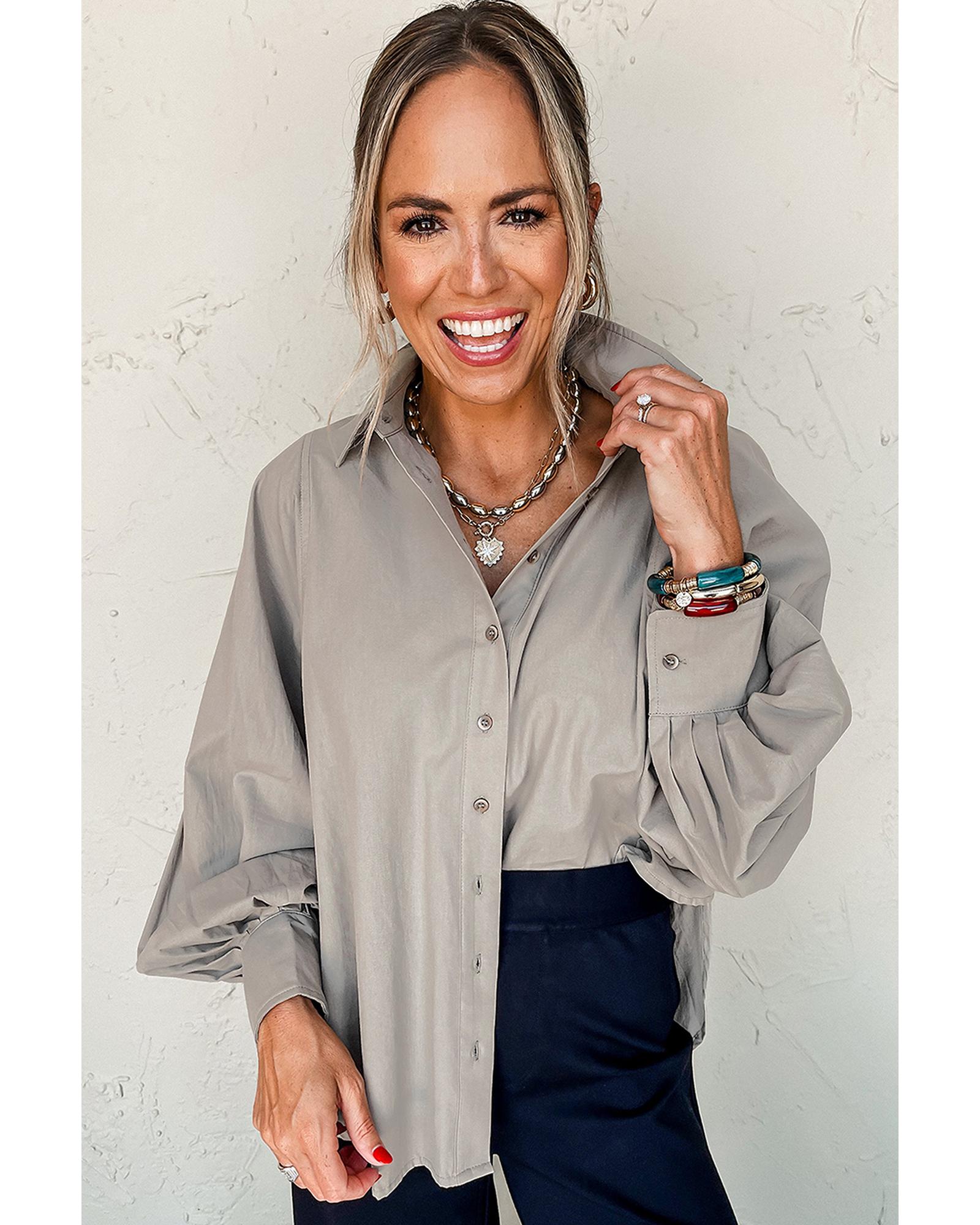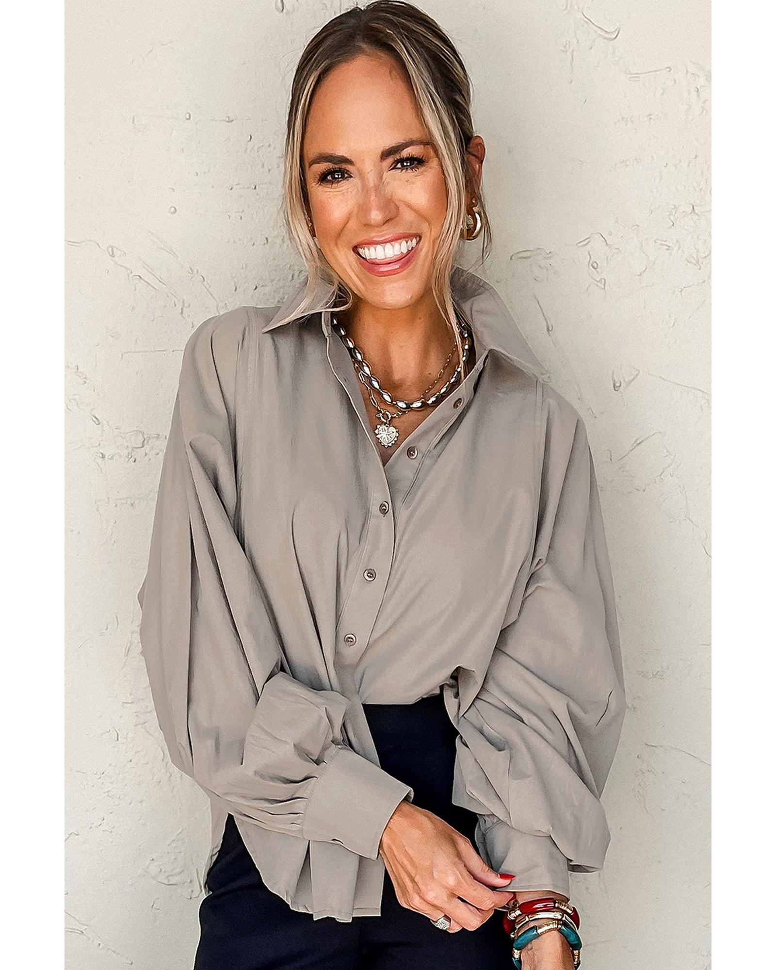 High Solid Color Balloon Sleeve Side Slits Loose Fit Shirt – XL