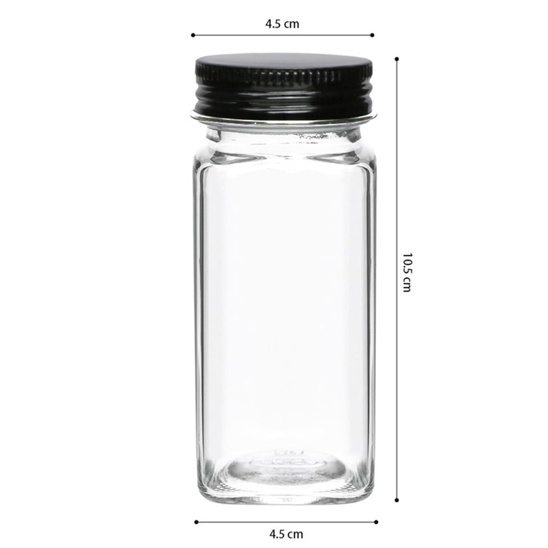• Set of 12 premium clear glass spice jars each with a 120 ml capacity to keep spices fresh and visible