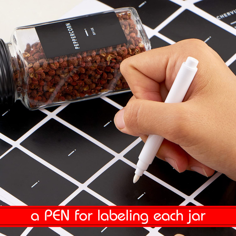• Includes 36 pre cut labels and a pen for easy spice identification and custom labelling