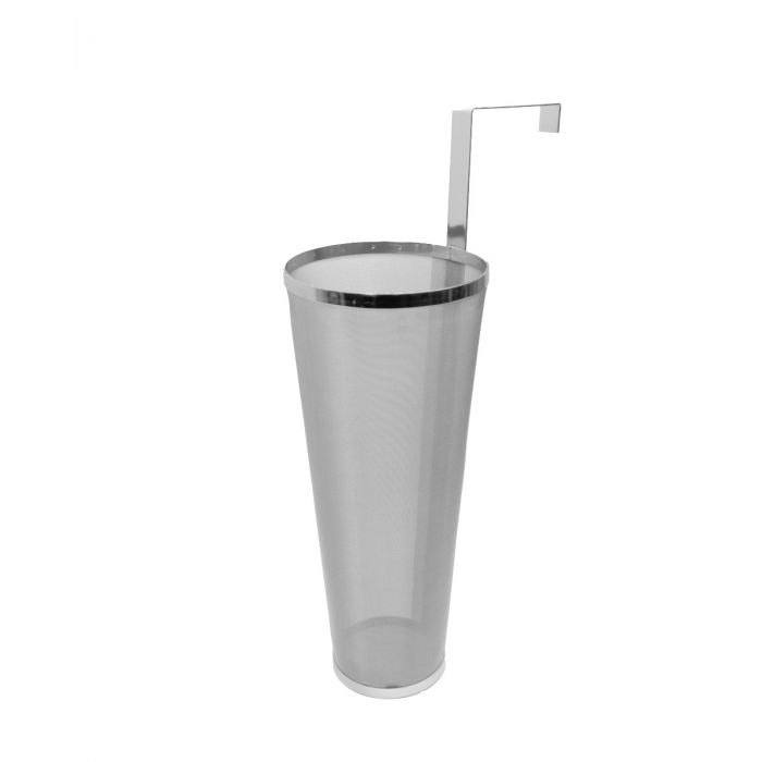 Perfect for containing hops while brewing beer and prevents hops getting into your chiller or fermenter! The spider sits over the edge of your kettle or keggle. During the boil hops can be poured directly into the spider. The spider is suitable for up to 300grams of hops. The basket is 35cm high with the opening at the top being15cm diameter and tapers down to a 10cm diameter at the bottom. It’s completely made from 304 stainless and the mesh is 0.2mm aperture so it will capture 99% of the hop material while still allowing the hops to move in the kettle so you get good hop efficiency.