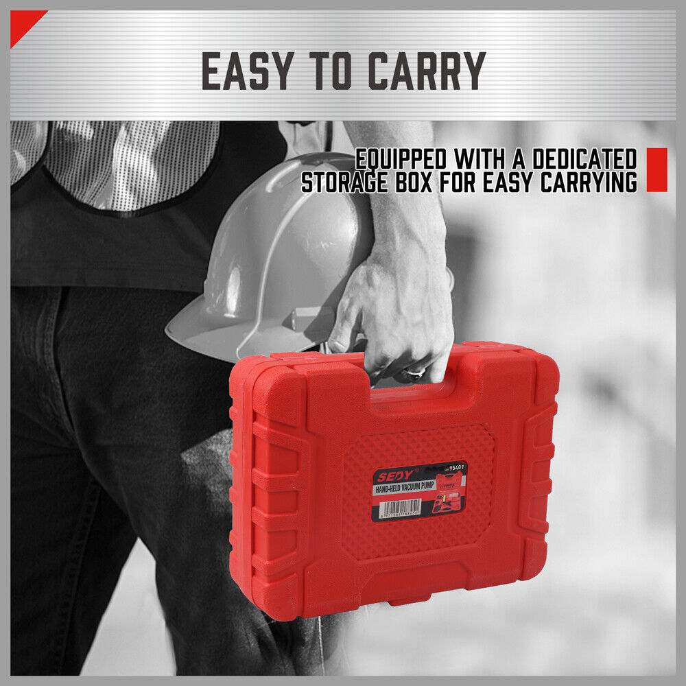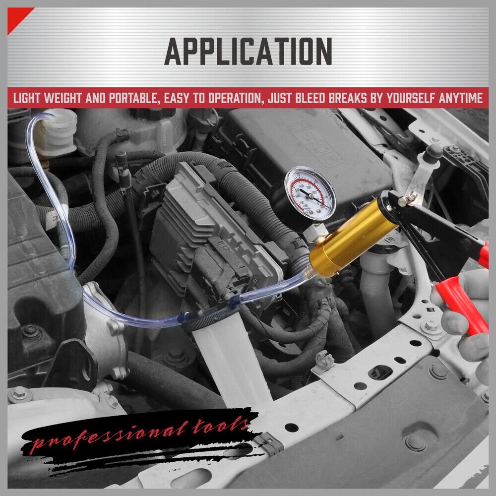 [Exquisite design]: The brake bleeder kit is beautifully designed and easy to use. You don’t need someone else to help you deflate the brake, it can be operated by one person. More efficient and simpler. The tool box will make the brake system exhaust tools easy to carry and store, and will no longer cause losses.[Various uses]: Automobile vacuum gauges can not only test and diagnose various parts and general systems of automobiles, but also diagnose and test the brake pipe system of motorcycles. Soak the nozzle in hot water for 1-2 seconds before use to connect easily.[Strong suction]: The unique pump body design of the handheld vacuum pump makes the power more powerful. You can suck out all the old brake fluid, put in new brake fluid at the same time, and replace the brake fluid.[Strong airtightness]: Each accessory is closely matched with the vacuum gauge components, so that the vacuum gauge has stronger airtightness, superior vacuum effect and excellent product performance.[Lifetime Warranty]: We have strict requirements on the quality of our products. If the products we sell have quality problems, we will provide a lifetime warranty.Specifications:Capacity: 120ML