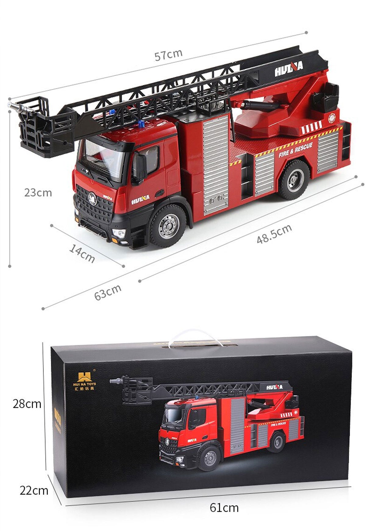 Huina 1:14 RC Fire Truck Extensible Ladder Toy Car Water Gun Construction Light Sound Gift