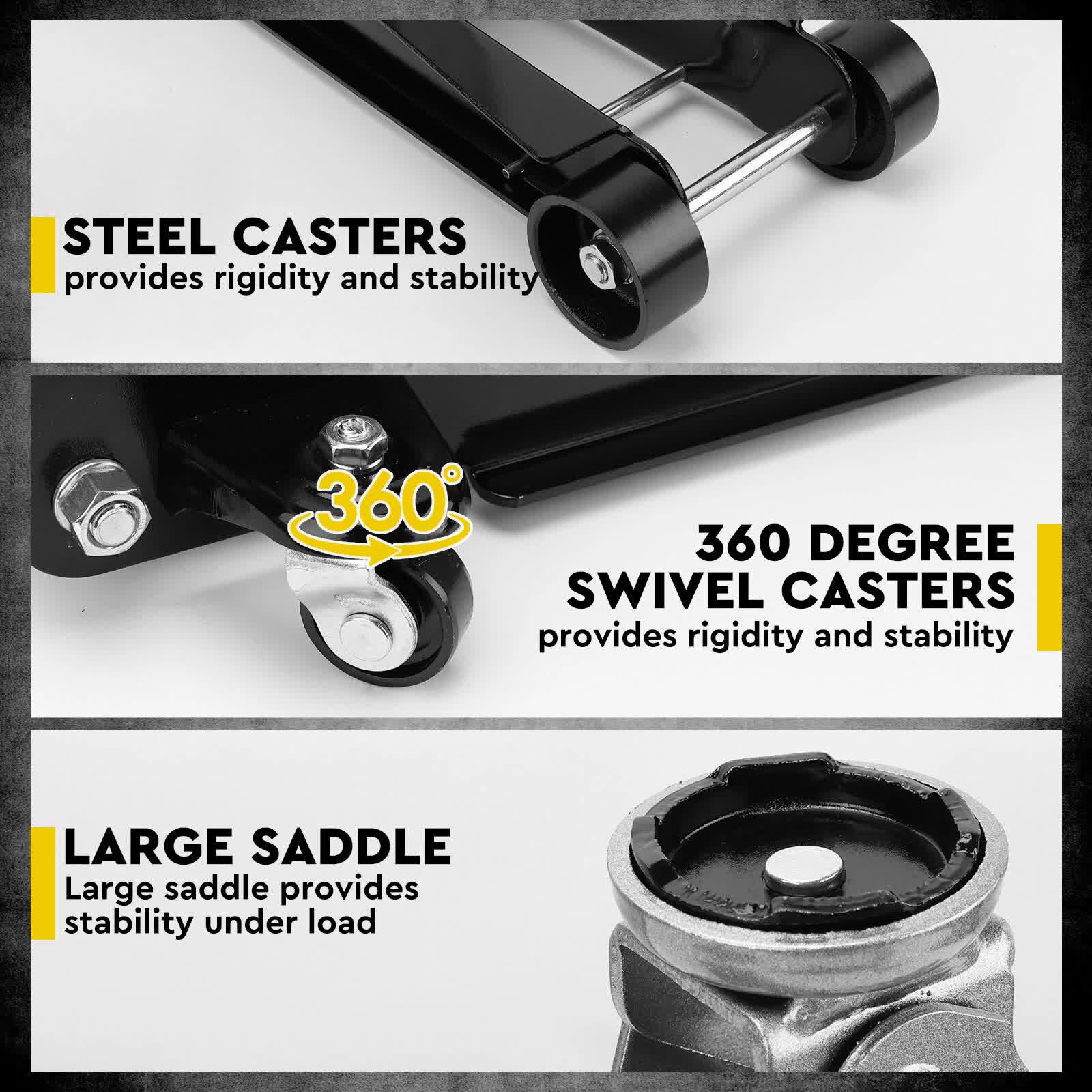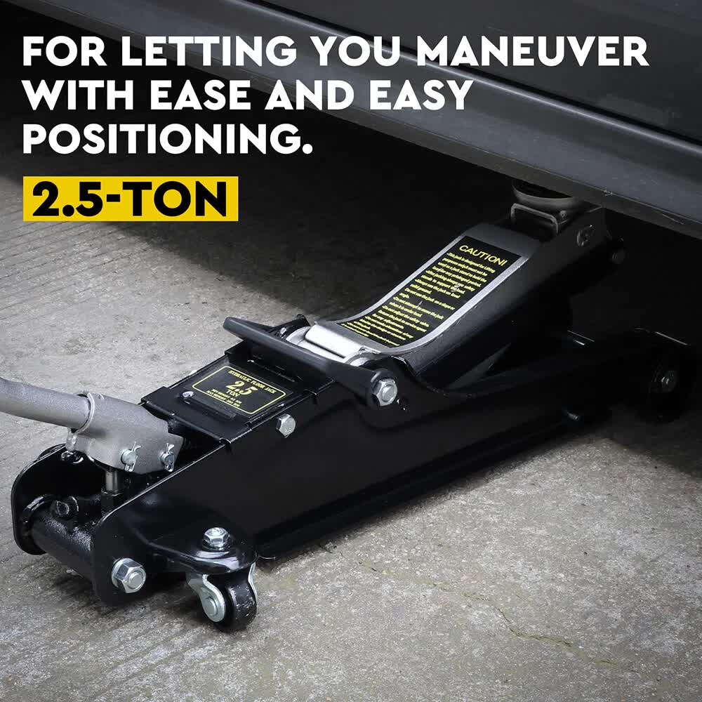 Features a 2.5 ton capacity with a minimum lifting height of 85mm and a maximum height of 380mm; Ideal for most cars, trucks, and SUVs