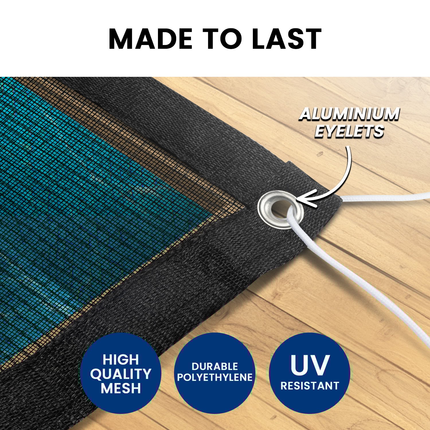 Highly durable and made to last, this quality net is made from Polyethylene material with UV treatment so it’s sun, colour and wear-resistant. It also has strong aluminium eyelets so you don’t have to worry about the net falling into the water.