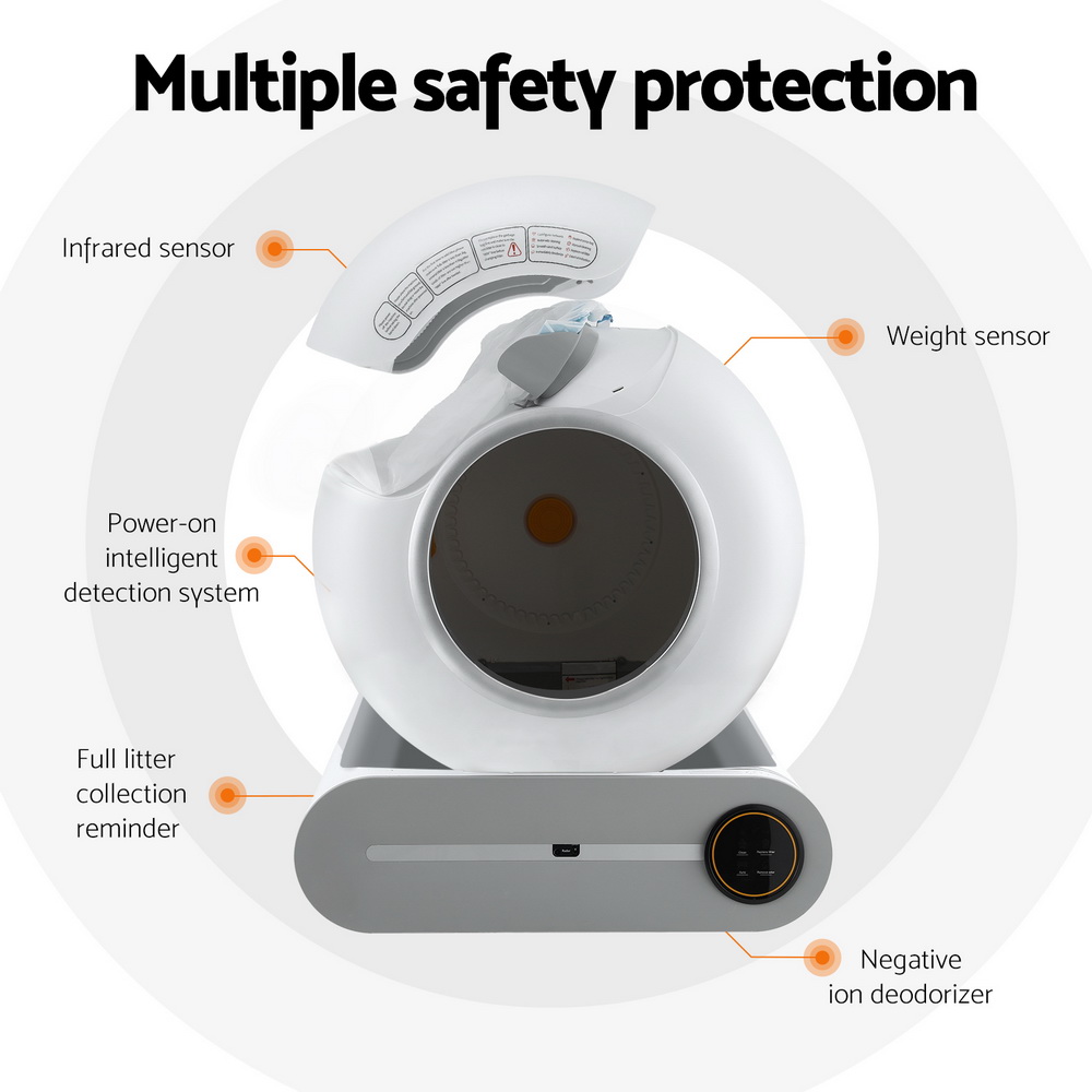 Introducing our advanced i.Pet cat litter box featuring a negative ion deodoriser, one-click sand disposal, and an intelligent power-on detection system. Designed for safety, spaciousness, and odour control, it cleans only when your cat is outside and includes a full waste collection reminder.