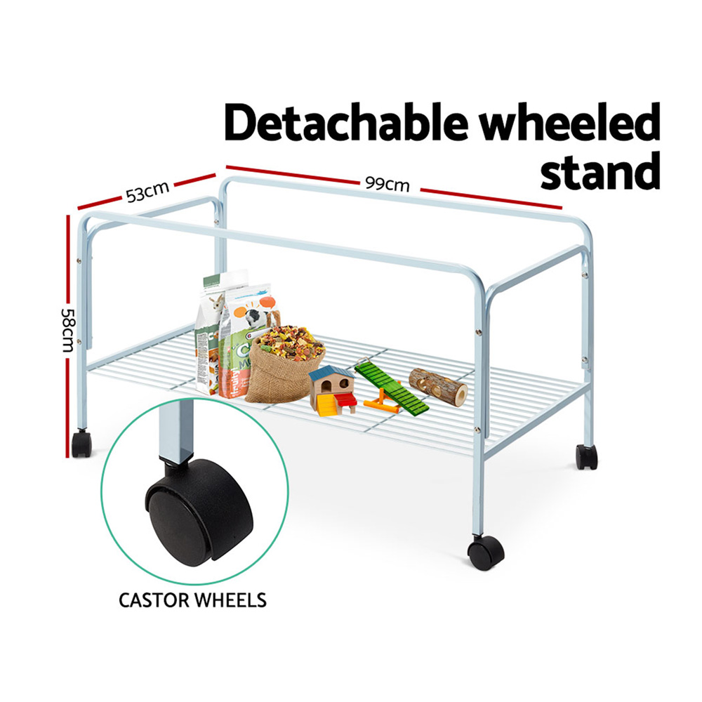 A perfect home for your beloved rabbit, guineas pigs or other small animals. Giving them plenty of room to play and nap. It’s a secure environment that make them feel safe and happy at all times. Built with heavy duty powder coated frame, you can be rest assured that this will be a long lasting home for your little pets. Equipped with secure locks and small-spaced wires, you don’t have to worry an escaping pets. Designed with top and side wide entrance that allows you to take them out easily or pat them while they’re inside. For your convenience, it’s built with castor wheels for easy moving and detachable top to clean the base anytime.