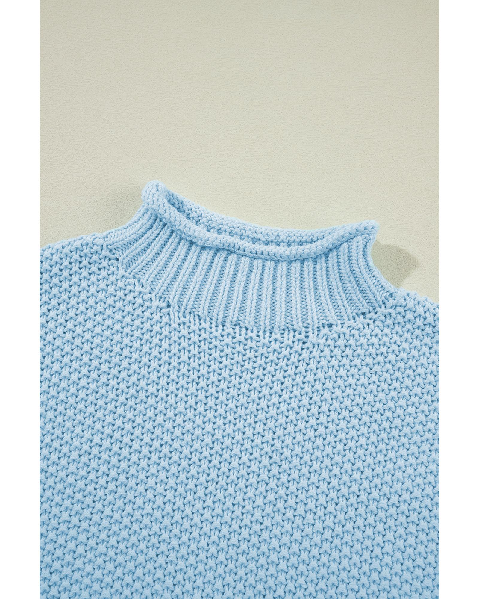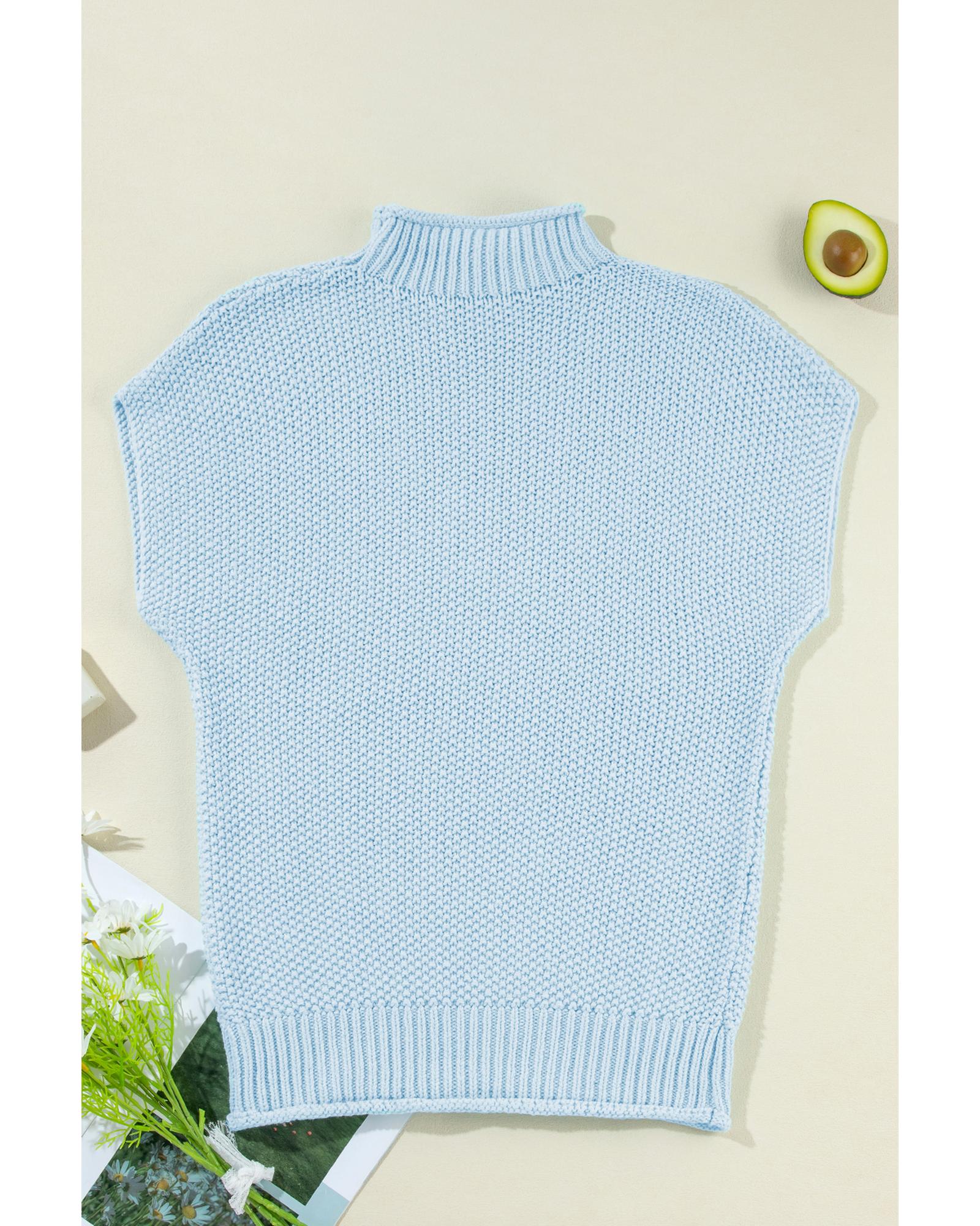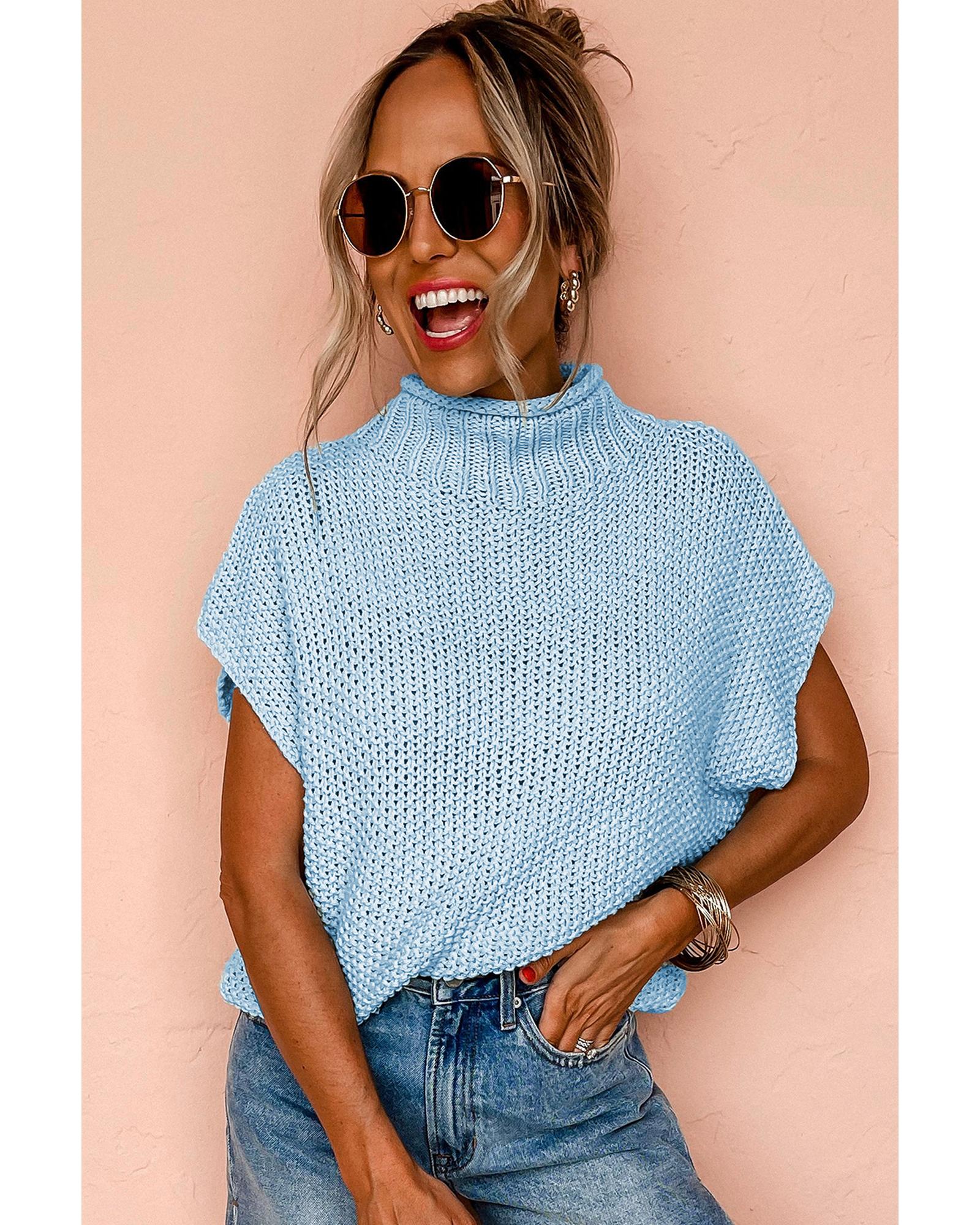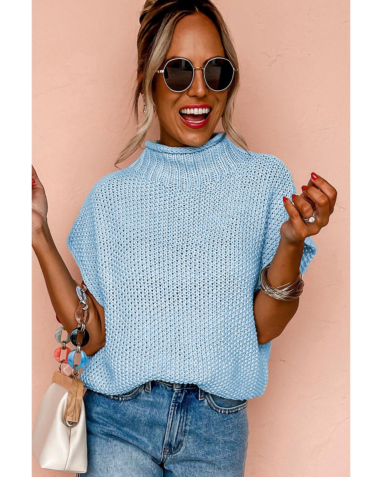 Iceland Blue High Neck Bat Short Sleeve Sweater – XL
