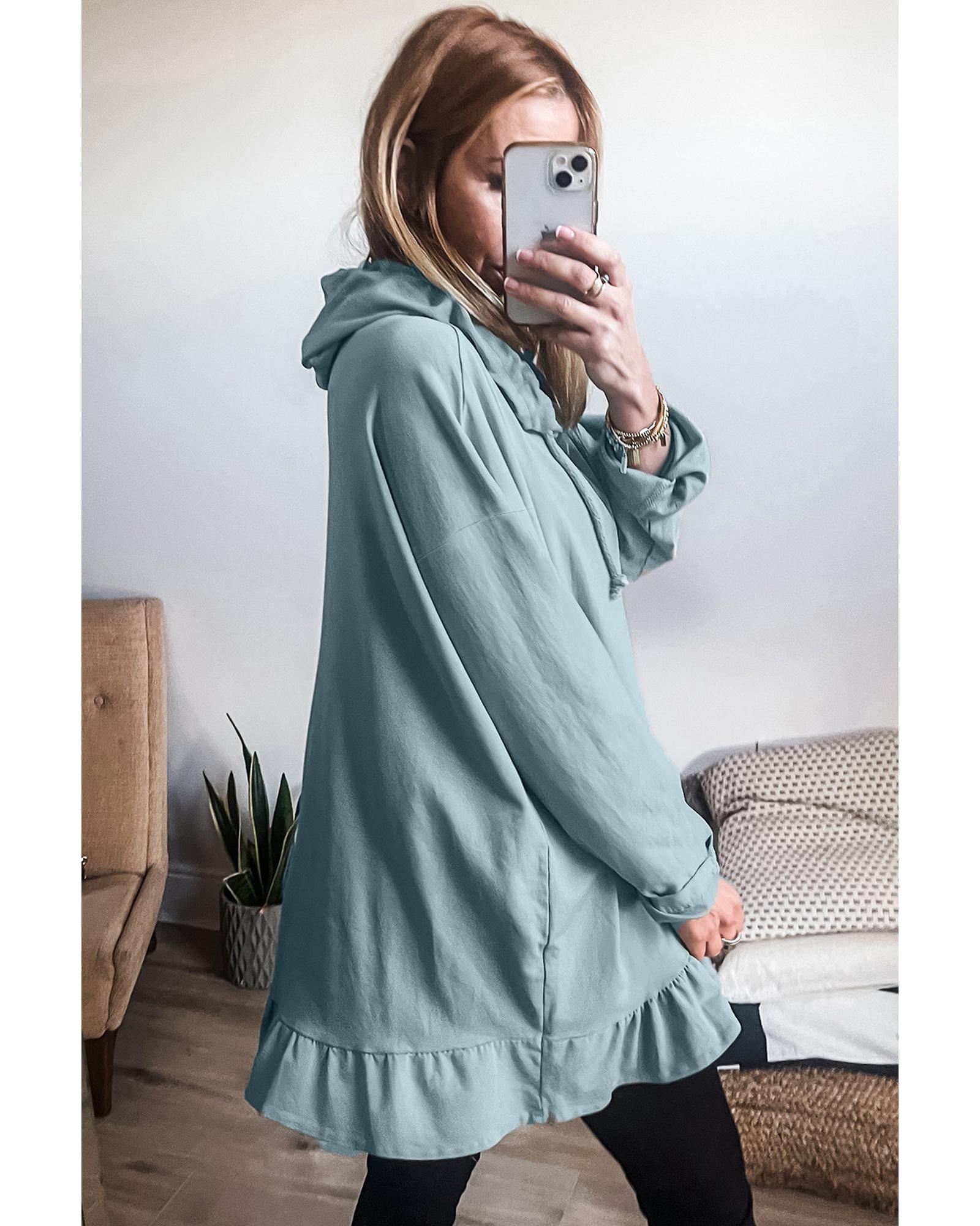 - Iceland Blue Solid Ruffled Hem Loose Fit Tunic Hoodie