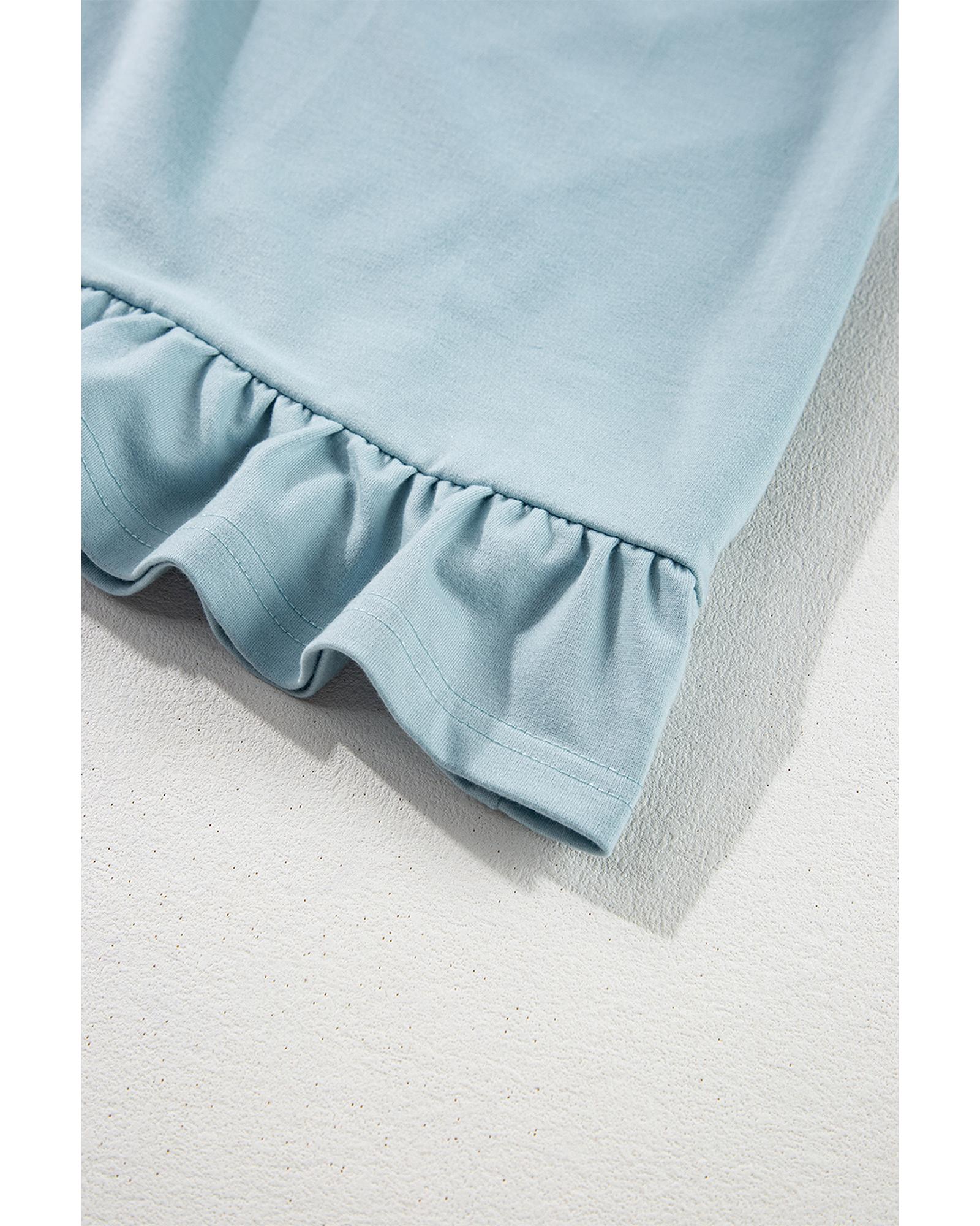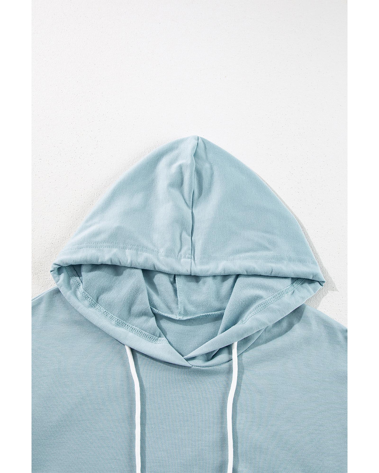 - Iceland Blue Solid Ruffled Hem Loose Fit Tunic Hoodie