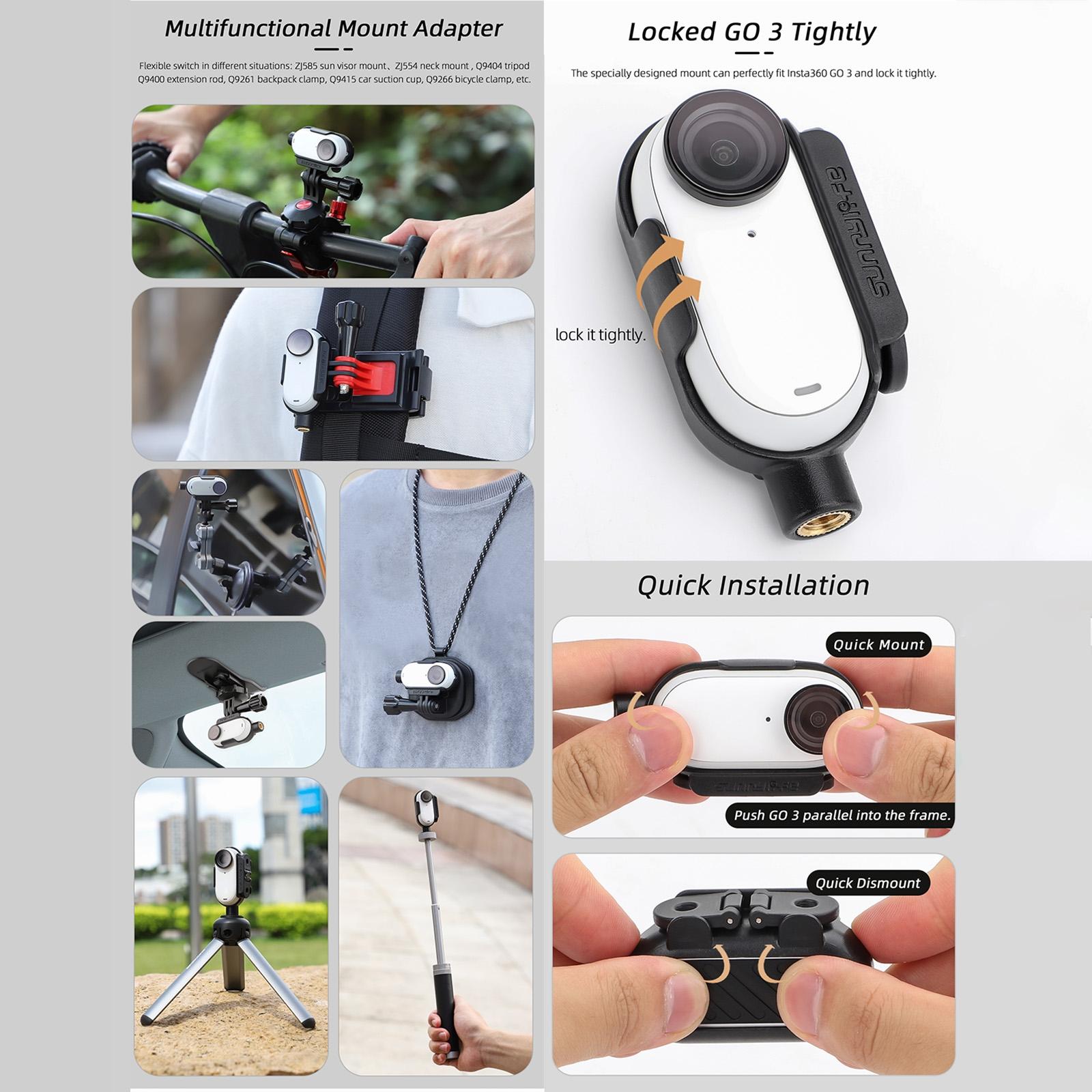 • 1 x Insta360 Go 3 Ist Bk592 Mount Adapter Protective Frame Cage Mounting Brackets Housing Case
