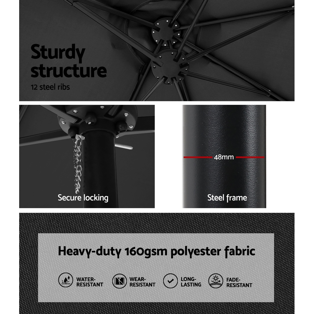 Instahut 4.57m Outdoor Umbrella w/Base Stand Beach Pole Garden Tilt Charcoal