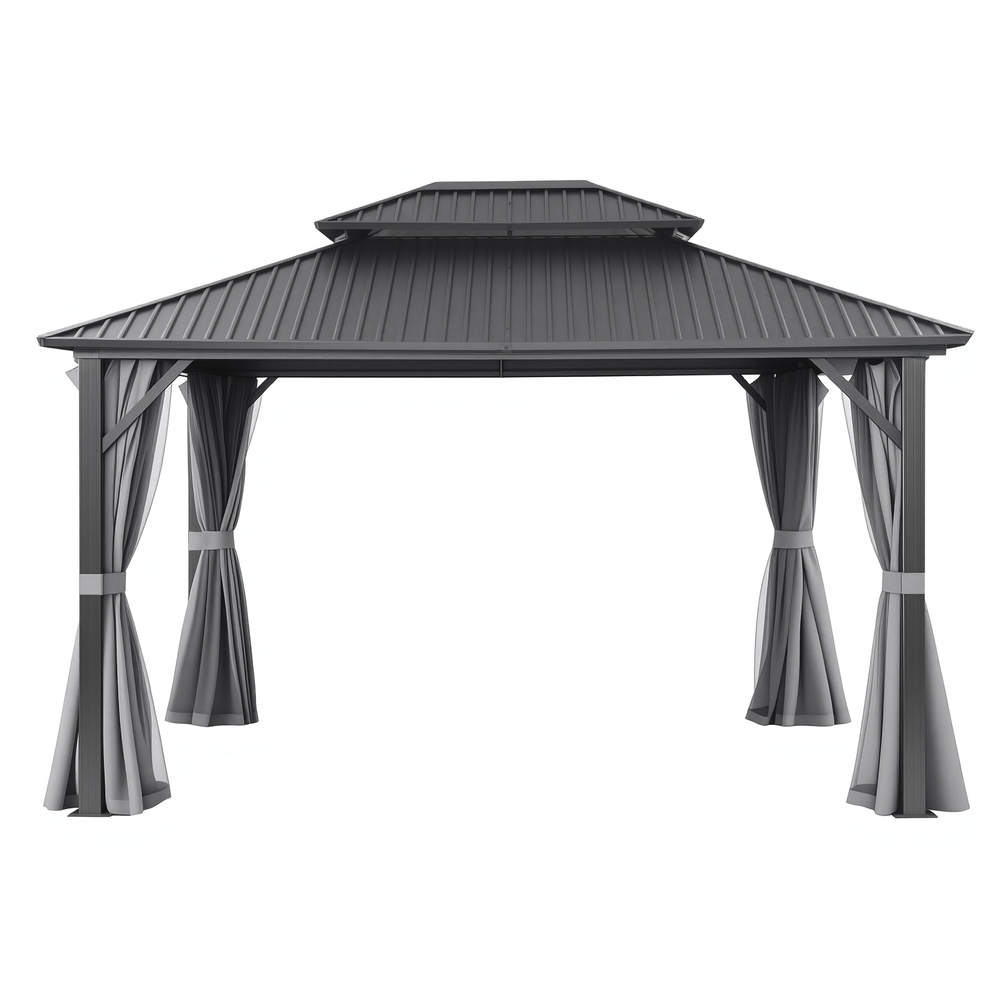 Built tough with a Galvanized Steel Double Roof for extra strength overhead and a lightweight yet robust Powder-coated Aluminum Frame that stands up to the elements. The UV-resistant and water resistant polyester top provides essential protection from our harsh sun and unexpected showers. Enjoy the outdoors without the bugs! Features mosquito and fly-proof mesh walls with practical removable netting and curtains. Adjust your shade and privacy easily thanks to the double-side zipper and secure hook and loop attachments. Designed for convenience and stability: Use the different shaped hooks for hanging lanterns or gear. The smart triangular structure enhances stability, and the included anchoring stand gives you peace of mind on breezy days.