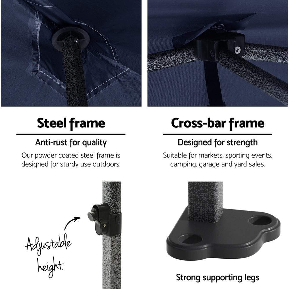 Instahut Gazebo Pop Up Marquee 3×3 Folding Tent Gazebos Camping 500D Oxford Navy