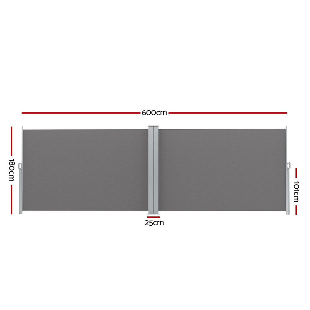 Instahut Side Awning Sun Shade Outdoor Retractable Privacy Screen 1.8X6M Grey