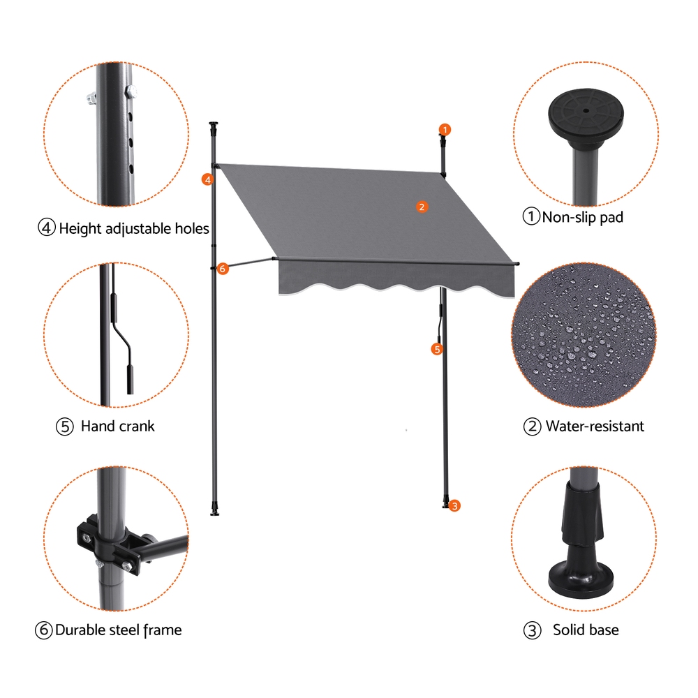 With scorching summer on the way, it is always good to have extra shade for the home, patio, garden or terrace blocking the prevailing wind and low-lying sun. The Instahut Retractable Pivot Arm Awning comprises a sturdy steel frame and high-quality and highly breathable 100% polyester fabric shade, meaning you get good airflow for maximum ventilation as well as ample cool shading. Both frame and shade are UV and tear-resistant and designed to be durable and long-lasting in all kinds of weather conditions (extreme weather conditions excluded). To extend or retract the awning, simply use the provided hand crank rod on the side for easy operation. Height adjustable holes ensure the awning remains at the perfect height. So don’t let the sun get to you with its harmful UV rays. Keep them at bay with our Instahut Retractable Pivot Arm Awning. Get yours today.