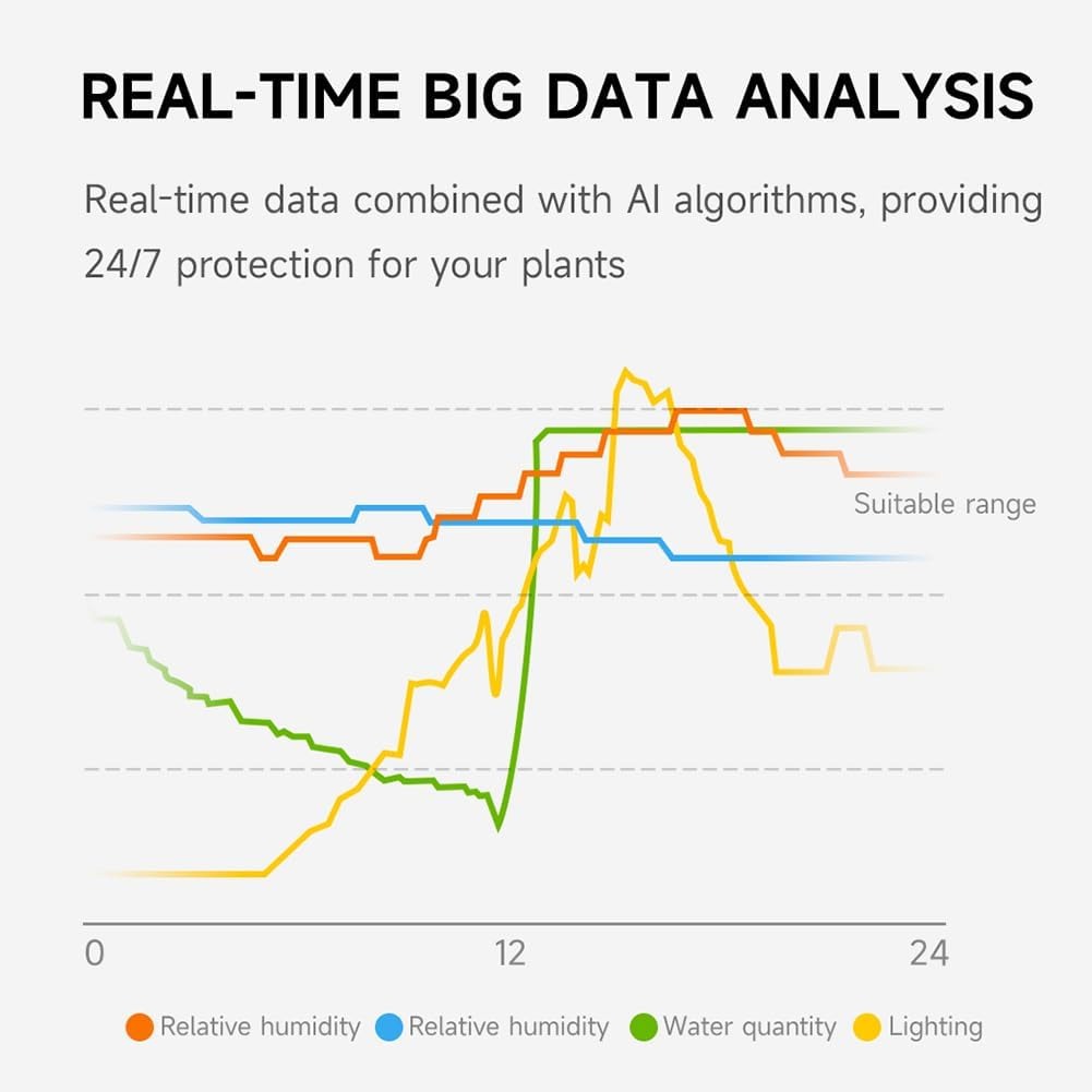 - 【Intelligent maintenance assistant】Usually we are worried about the maintenance of plant survival, the smart planter is equipped with 7 kinds of multi-dimensional sensors specifically for plants to help us protect the health of plants to the maximum extent.