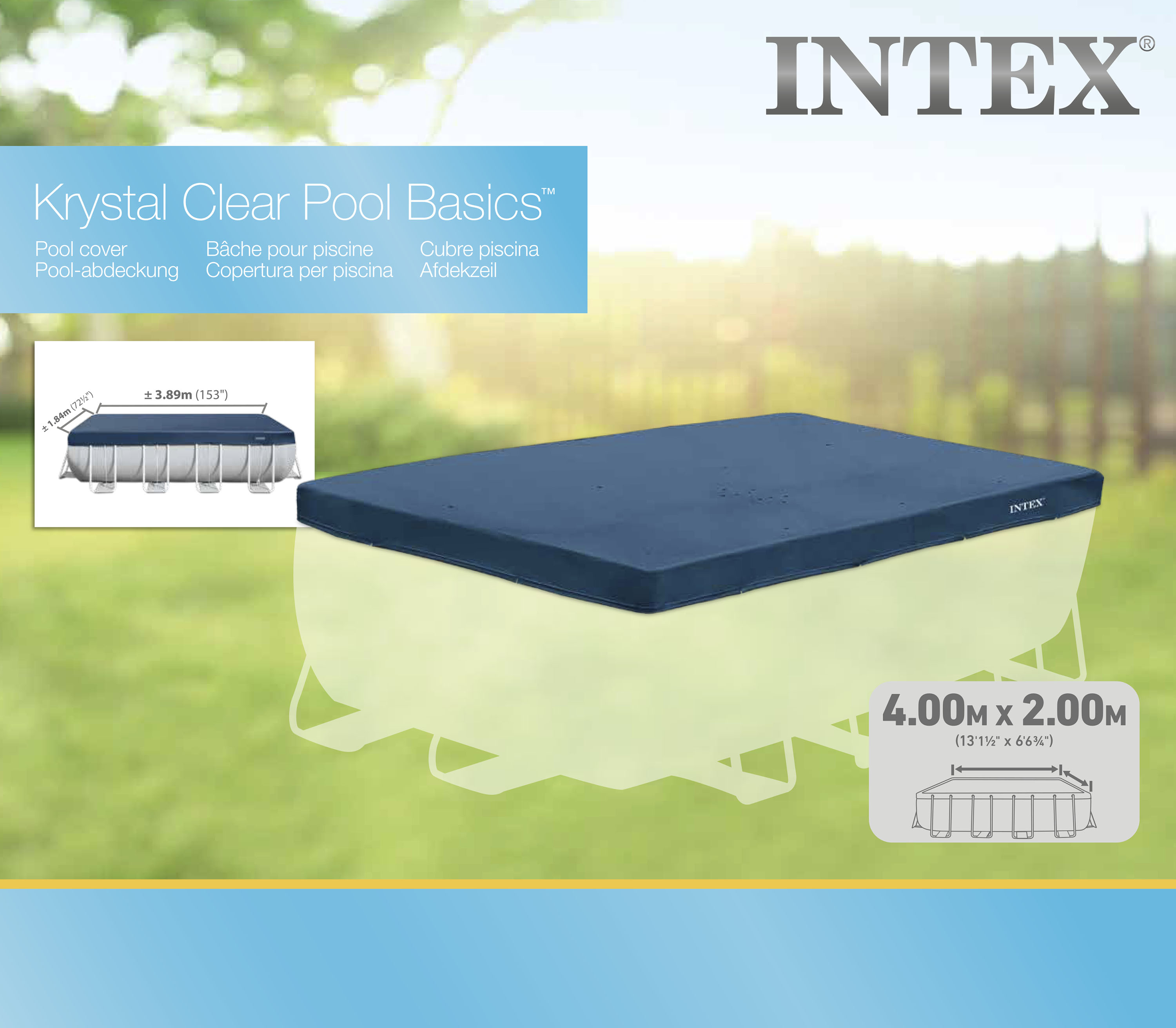 Genuine Intex Frame Pool Cover 457cm 280374.0m x 2.0mPool covers come with rope ties, drain holes to prevent water accumulation and a shelf box for easy storage.Overhang: 12″ (30cm)Details: