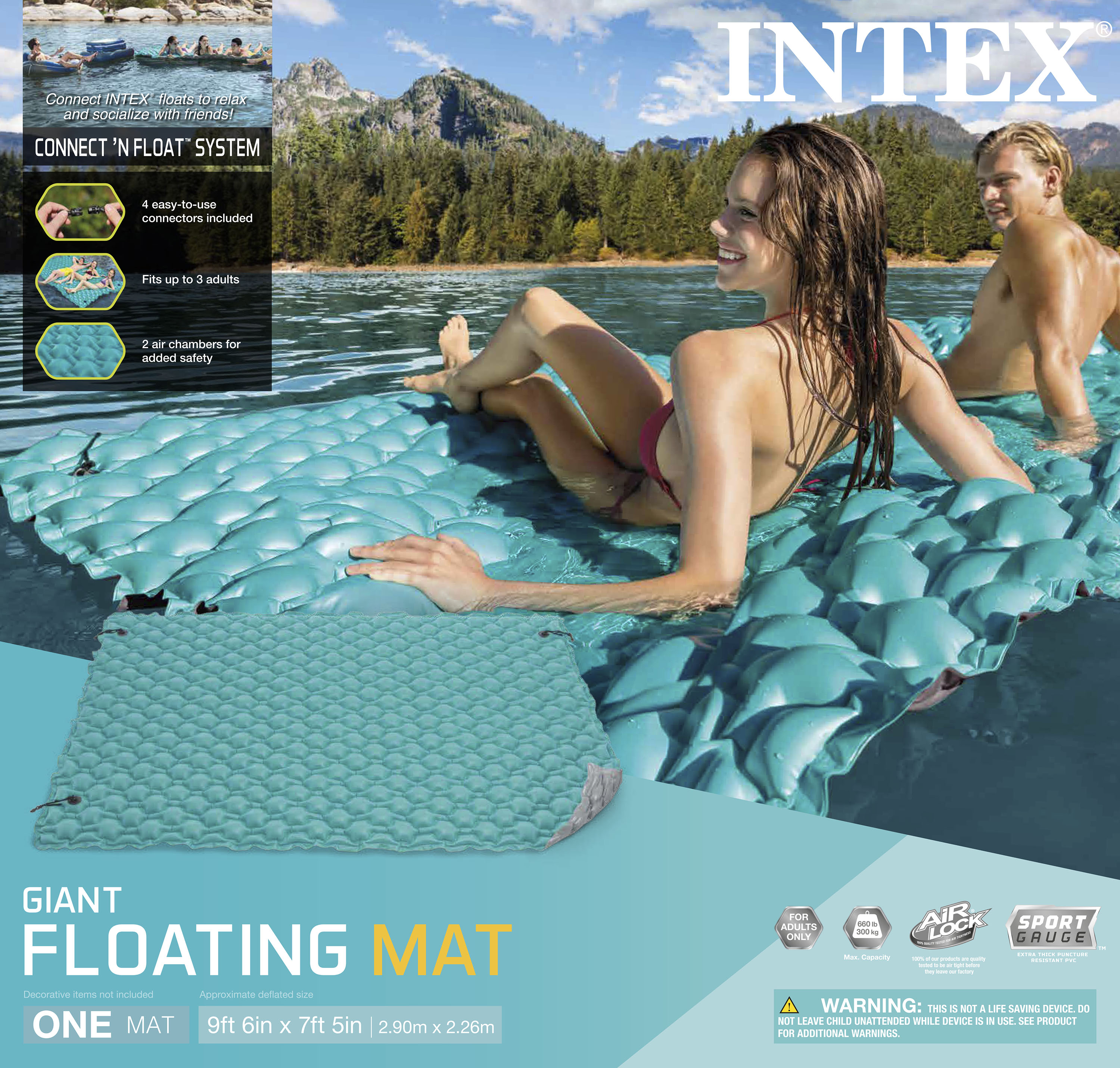 This easy to inflate and deflate mat can hold up to three people for days of pool fun. Built with 20ga vinyl with 2 air chambers for added safety. 4 easy-to-use connectors included. Easy to inflate and deflate.