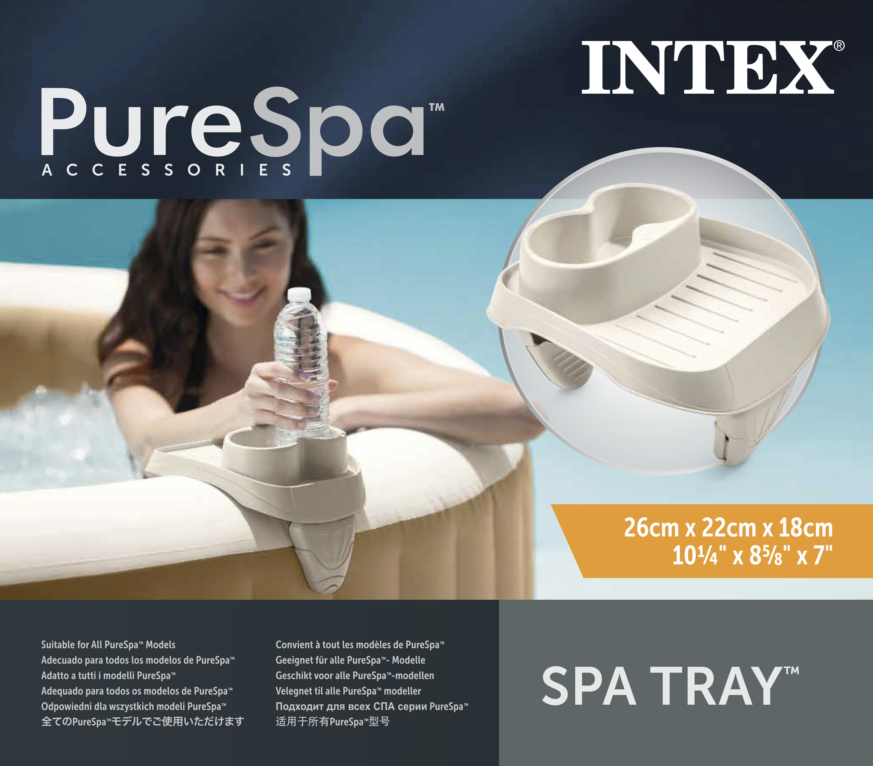 The PureSpa cup holder and refreshment tray is designed to securely attach to the spa wall. Keeps beverages and snacks close by while you relax. Removable for convenience. Holds 2 standard size beverage containers.Details: