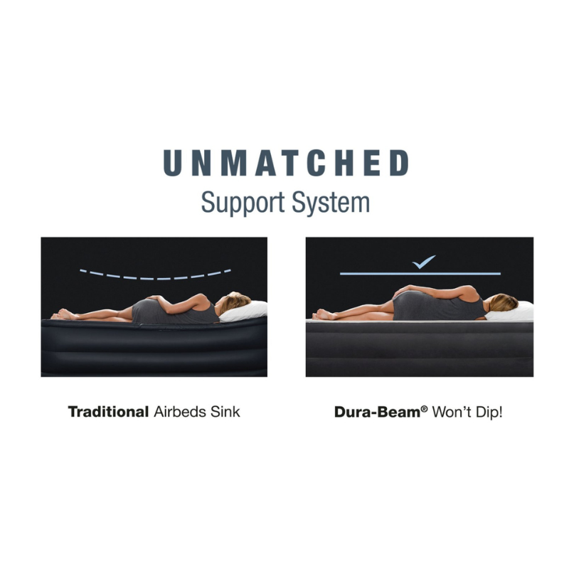 Provide your guests with a cozy Comfort-Plush Elevated Airbed during their next visit. Engineered with the Dura-Beam Technology, which is comprised of thousands of high-strength polyester fibers, resulting in amazing durability for years of lasting comfort, the Comfort-Plush Series provides enhanced comfort, stability, and support. This ultra-lightweight bed adjusts to your personal firmness preference for an incredible night’s sleep. For added convenience, the powerful internal pump easily inflates and deflates the airbed within 4 minutes.Details: